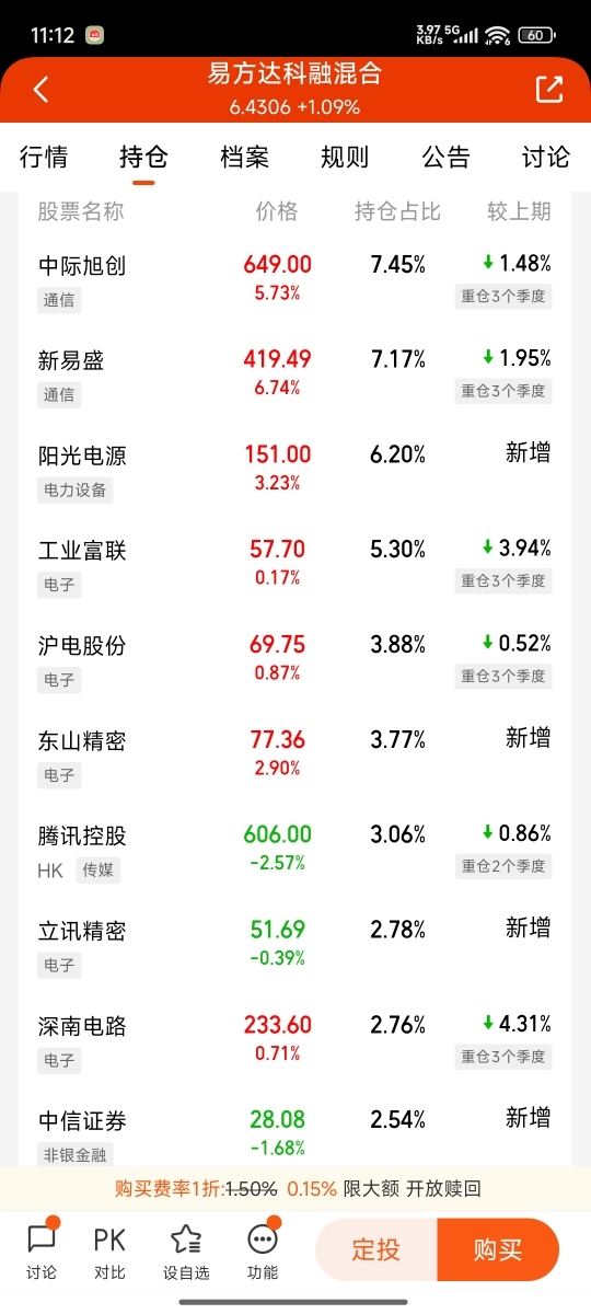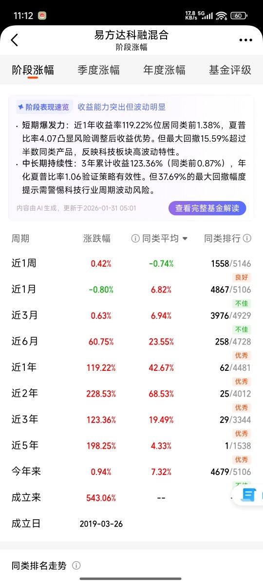 2月3日, 我开始分批建仓 易方达科融混合(F110022) 。选择它,并非押注单一个股,而是看重其基金经理在高端制造领域“深挖井、慢喝水” 的特质。它的持仓里有孤独的测量仪器公司、有不起眼的国产阀门龙头——这些名字远离热搜,却卡在产业升级最确凿的路径上。