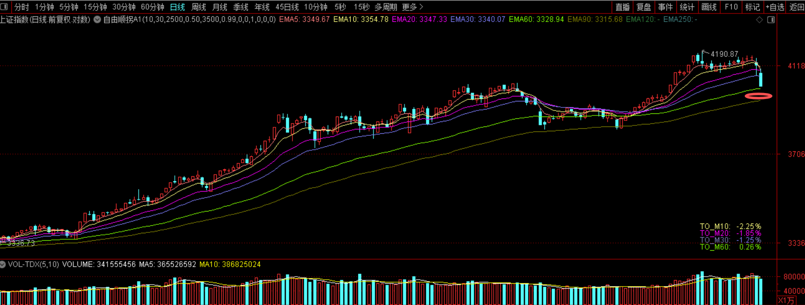 上证大阴线中断涨势,关注止跌情况。