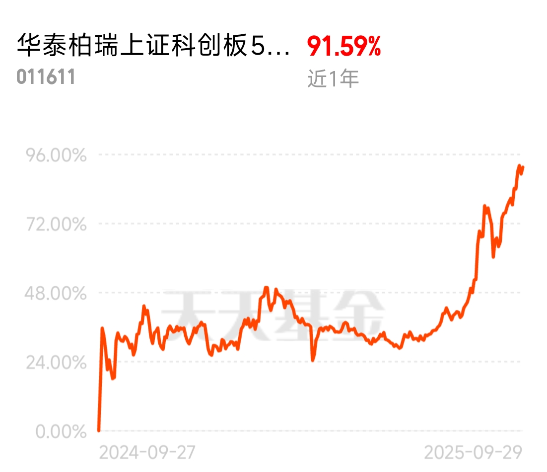 华泰科创50一年91.59%!今天涨2%,三个月44.60%,机器人也在发力,科技细分赛道机会不少。$华泰柏瑞上证科创板50成份ETF联接C$