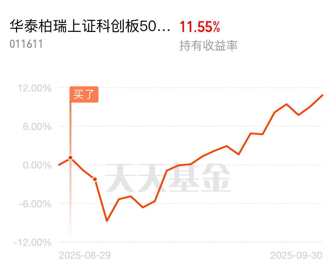 赚发了!今天大涨近6%,我买的$华泰柏瑞上证科创板50成份ETF联接C$目前已经