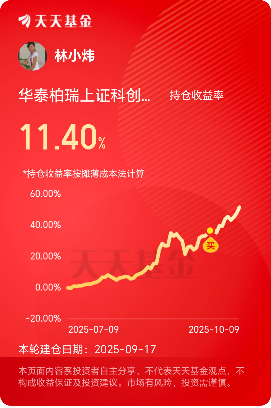 #晒收益# 华泰科创50最近表现真不错,今天涨2.76%,三个月涨幅超50%!科技新品密集发布,半导体和AI算力机会多多。$华泰柏瑞上证科创板50成份ETF联接C$ #沪指盘中突破3900点!什么信号?# #国际金价史上首次升破4000美元大关# #10月基金投资策略#