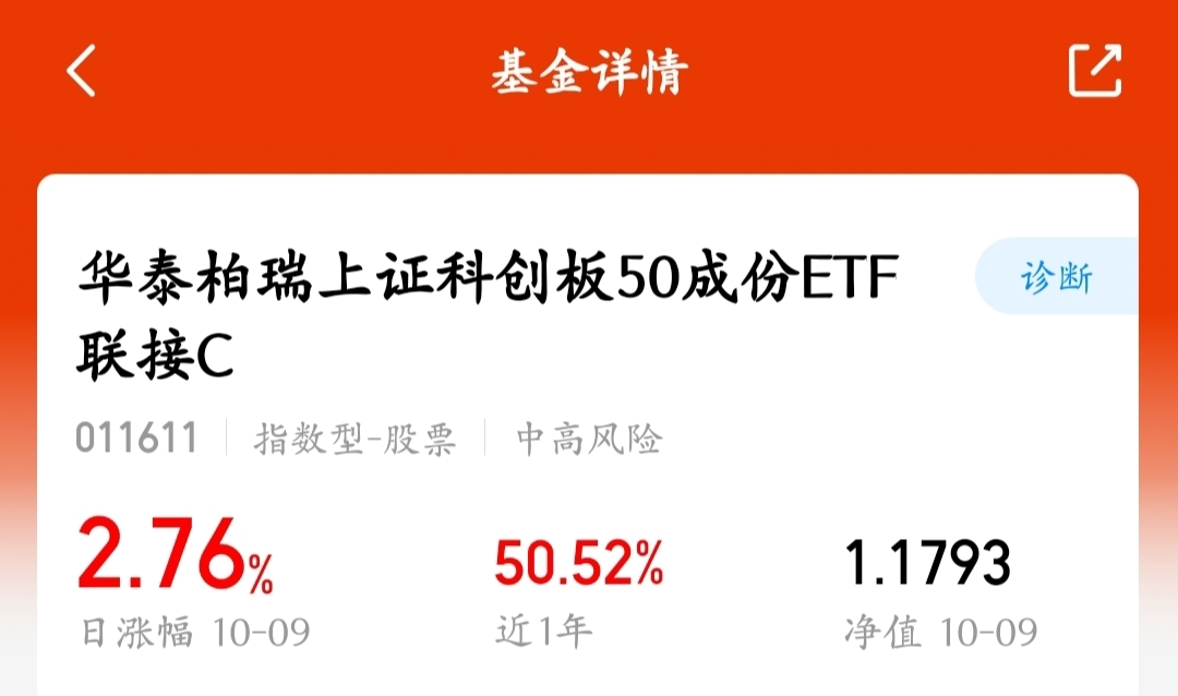 刚看到$华泰柏瑞上证科创板50成份ETF联接C$今天涨了近3%,三个月直接涨超5