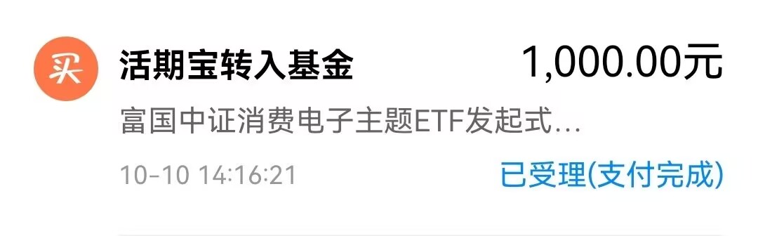 2、$富国中证消费电子主题ETF发起式联接C(OTCFUND|015877)$,买入1000元