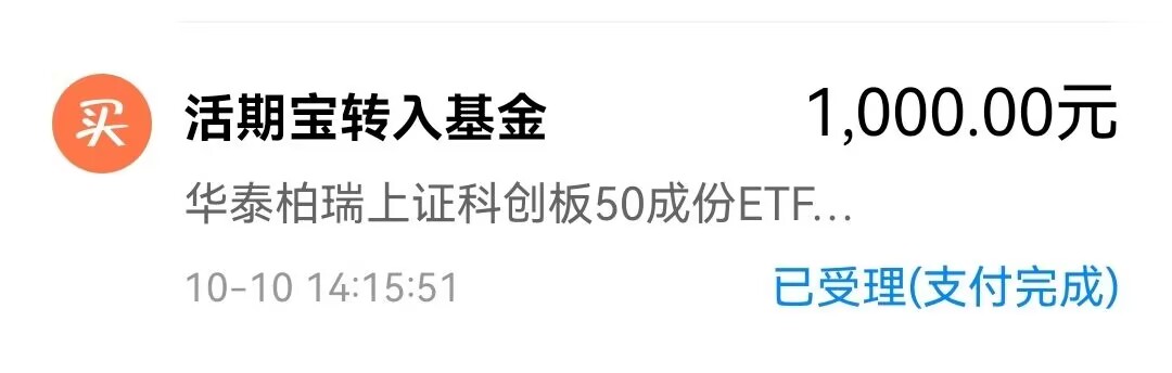 1、$华泰柏瑞上证科创板50成份ETF联接C(OTCFUND|011611)$,买入1000元