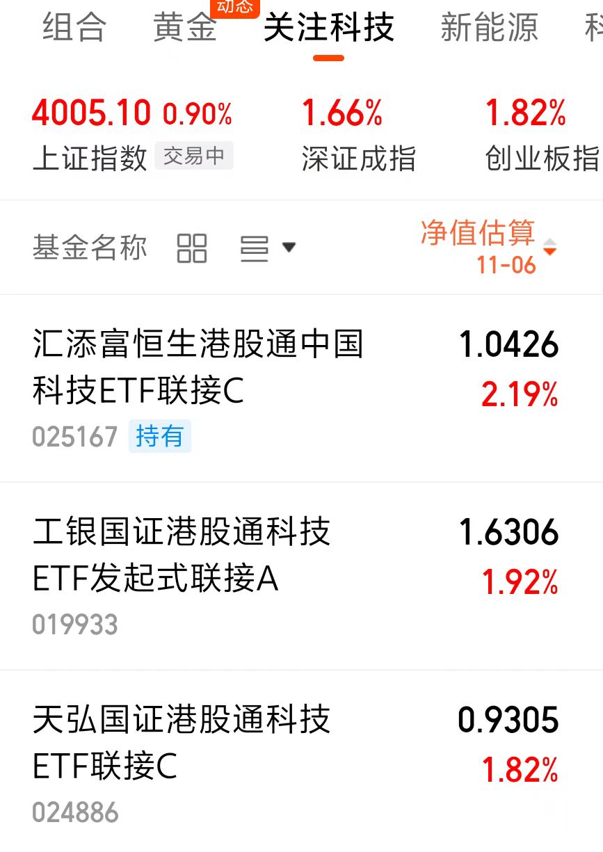 $工银国证港股通科技ETF发起式联接$ 今日估值上涨1.92%