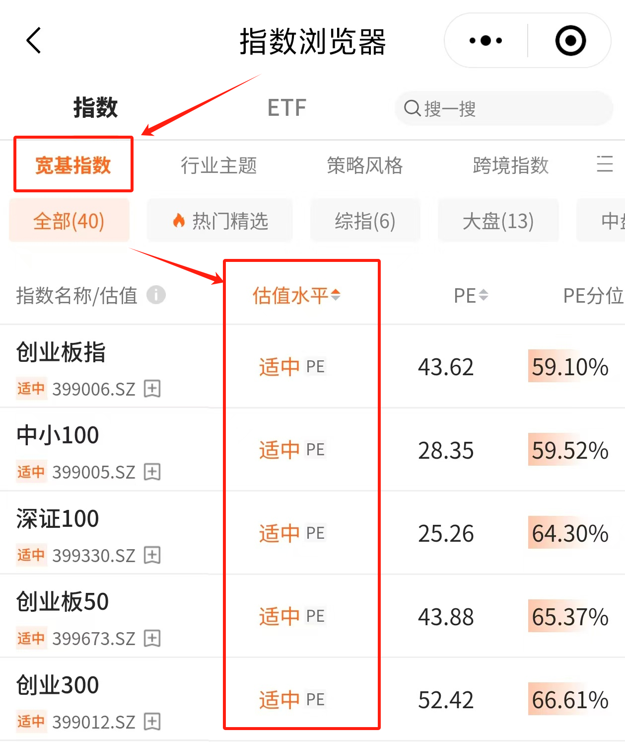 我想看看宽基还有什么“捡漏”机会,直接点“宽基指数”分类,答案就出来了:创业板居然仍是“性价比之选”。