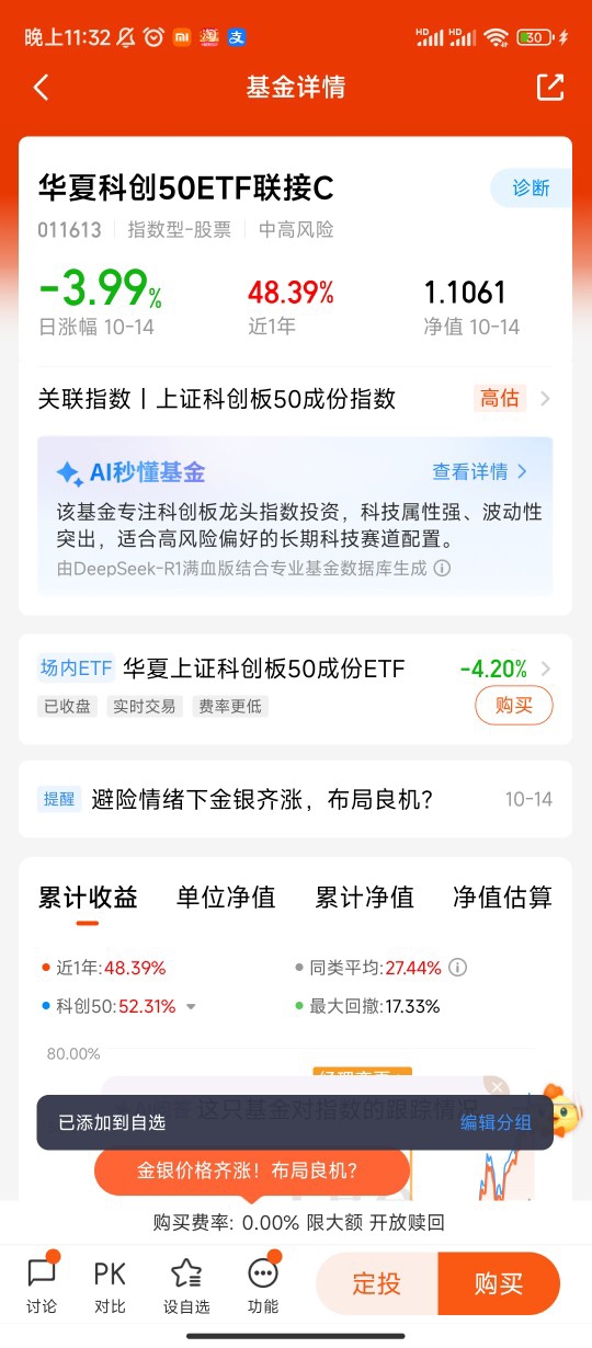 #分享国庆见闻,晒收益,瓜分好礼!# $华夏科创50ETF联接C$