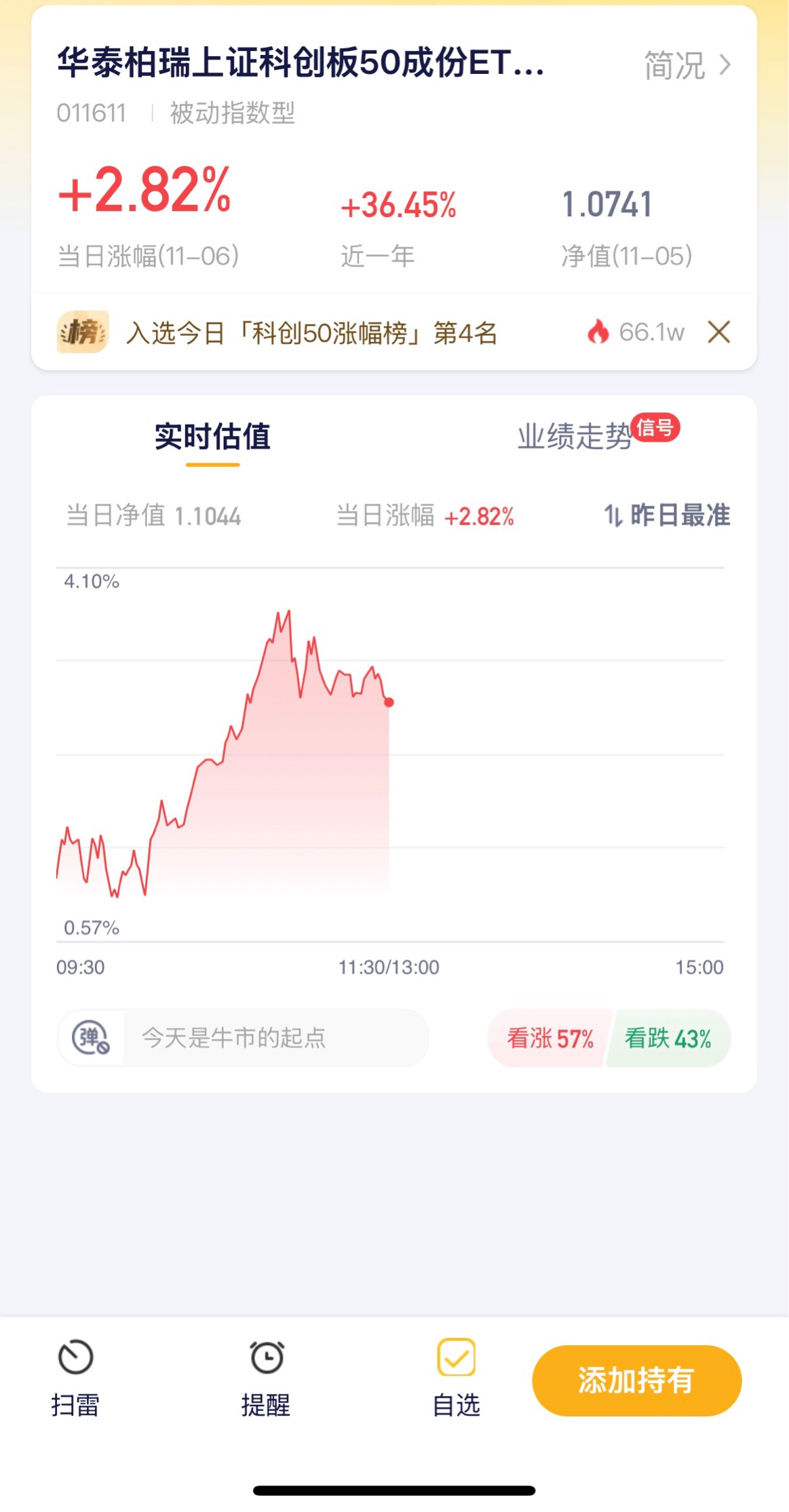早盘震荡之后直接拉升,半天就涨了不少,看盘面里的半导体、AI这些硬科技股都在发力,海光信息、寒武纪这些龙头股涨得特别猛。前几天指数还稍微回调了两下,我还琢磨着要不要加仓,现在看来科技主线是真的稳。作为咱们普通小散,直接买科创板股票门槛太高,还容易踩雷,不如选华泰柏瑞的产品,把50家头部科创企业打包持有,分散风险还省心。而且C类份额特别友好,不用申购费,持有7天以上赎回也免费,平时定投摊成本,遇上今天这种行情也能跟着喝口汤,想参与科技风口又怕麻烦的朋友可以试试