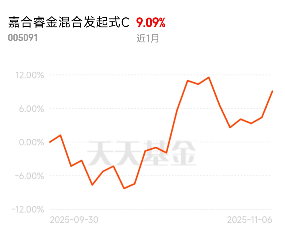 这段时间基金市场里,科技主题基金成最大赢家,不少产品净值快速攀升。嘉合睿金混合C表现不俗,近1个月涨了9.09%,聚焦CPO和存储芯片高景气赛道,基金经理选股独到,操作给力,收益有保障。