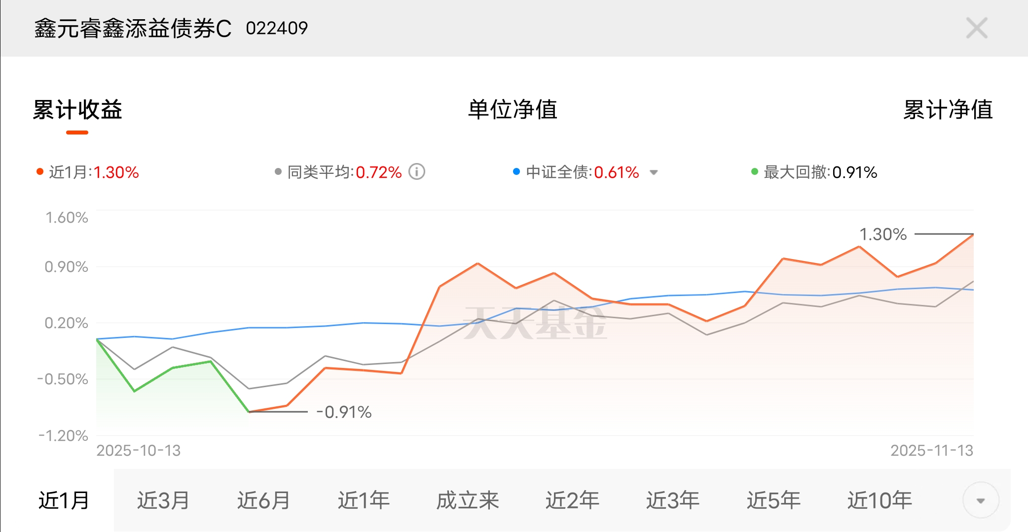 银行理财收益不尽如人意,很多人都在找替代方案,债券基金成了热门选择。鑫元睿鑫添益债券C实力在线,近1个月收益1.30%,低风险属性拉满,不用担惊受怕,让钱慢慢生钱,特别省心。$东方红30天滚动持有纯债A$ $南方初元中短债C$ $汇添富理财60天债券A$