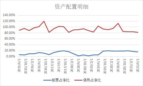 在行情趋势明朗的时候,基金经理会增持权益资产,顺势获取丰厚收益。以华夏安康为例,过去两年,柳万军整体看好权益类资产,组合大幅超配了股票和可转债,从2019年3季度到2021年2季度始终保持15%以上的股票仓位,2019年末和2020年末可转债的配置占比都达到了50%以上。