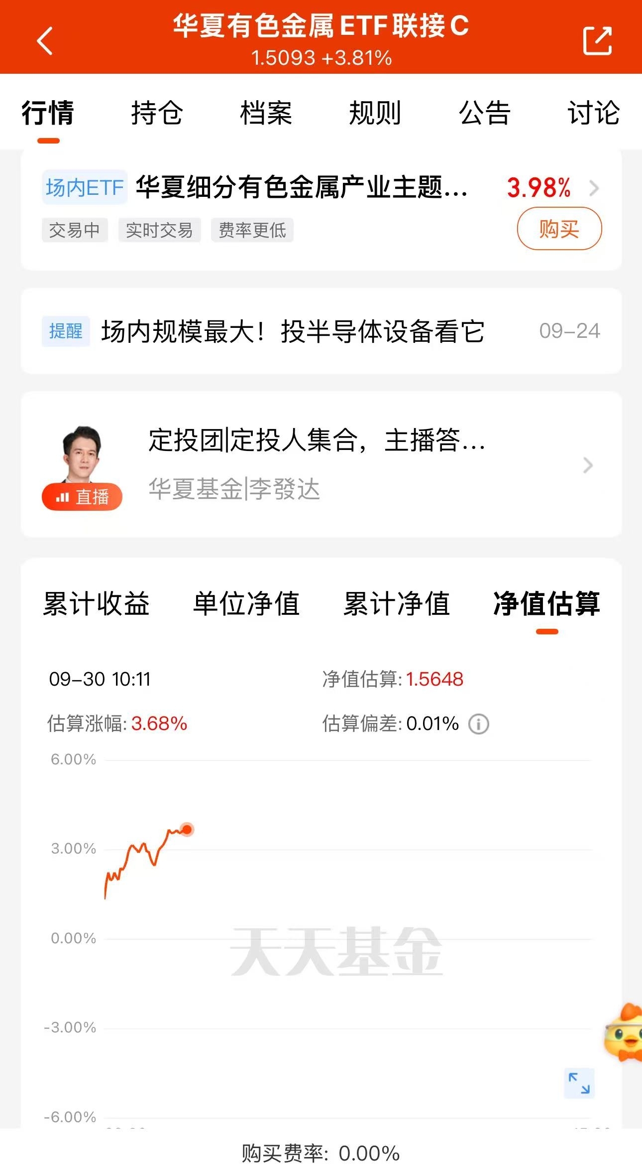 有色金属涨幅居前,当前估值上涨3%+,连红4天$华夏有色金属ETF联接C$覆盖产业链核心企业,叠加市场做多热情持续升温,必须持仓过节