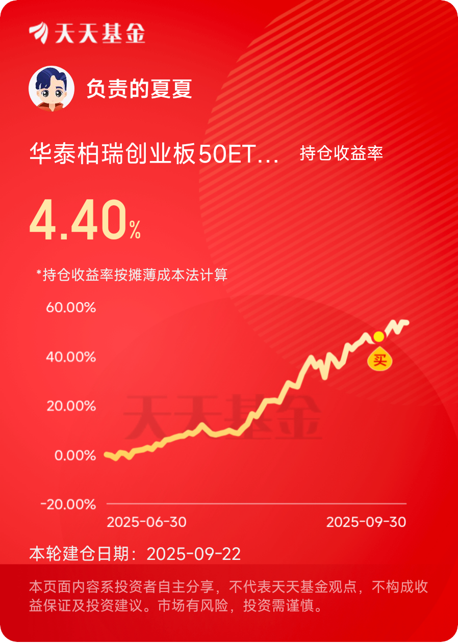注意到芯片、CPO板块强势拉升,创业板跟涨。$华泰柏瑞创业板50ETF联接C$ 今天估值涨了1.71%,近一个月12.79%的收益,三个月53.61%的涨幅,科技行情确定性很高。#晒收益#