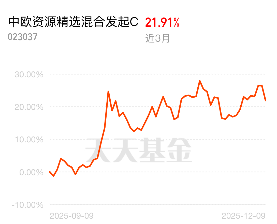 新能源产业链持续扩张,对铜、钴等资源需求节节攀升,价格跟着涨。中欧资源精选混合发起 C 近 3 个月 21.91%,短期配置踩中需求风口,收益不用愁。