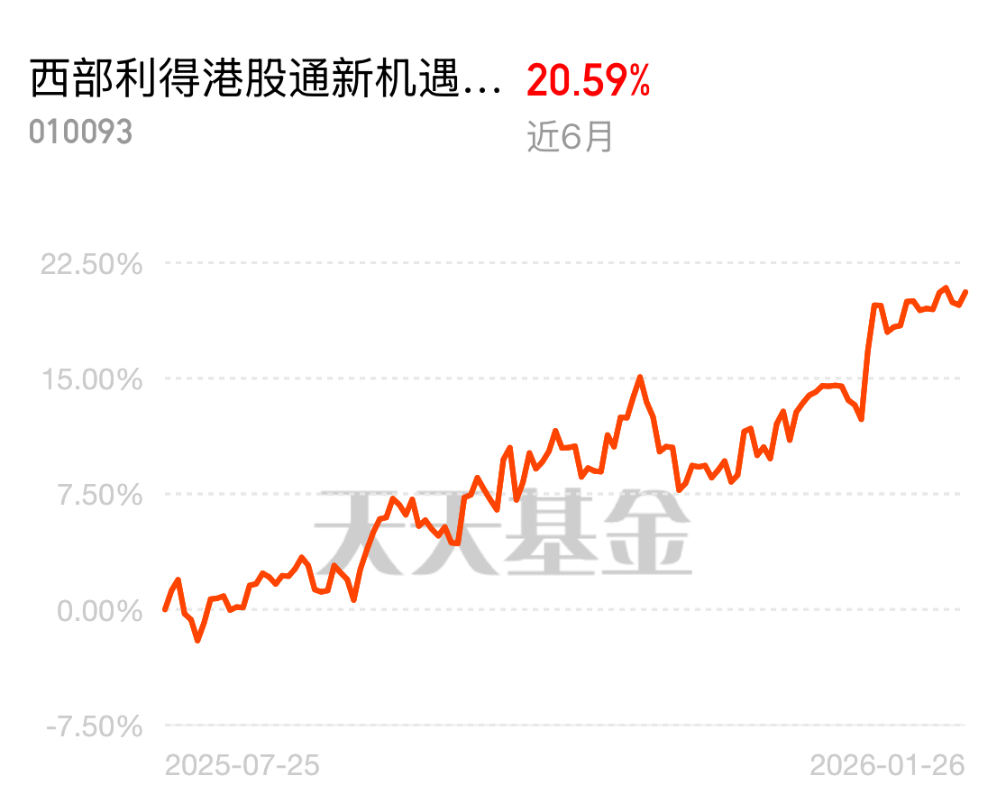 港股通里的尖子生基金,西部利得港股通新机遇混合C近6月20.59%稳步上涨,新动