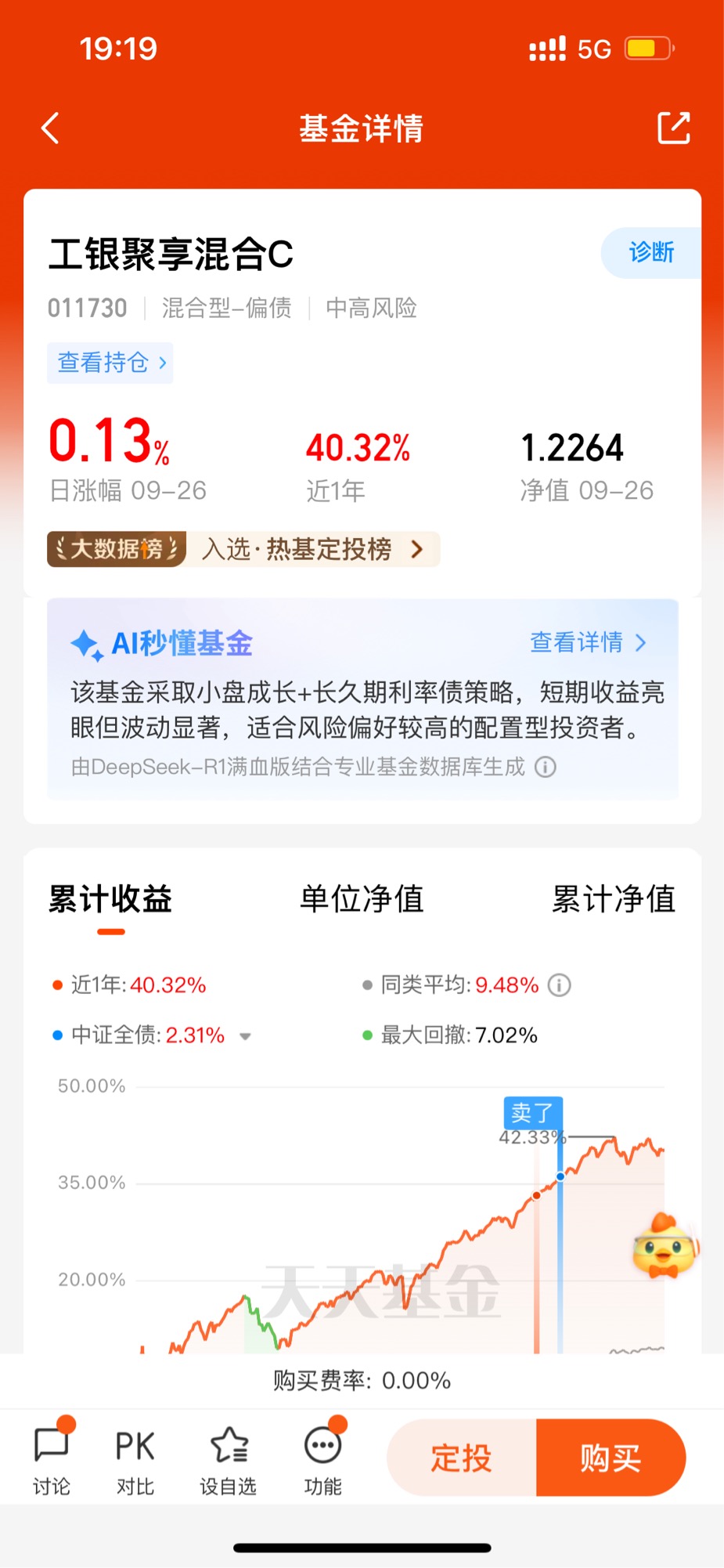 如果你也在愁存款利率太低、纯债收益太薄、股市又不敢all in,工银聚享这类“固收+”确实值得重点看看。它不是那种躺赢的产品,但通过严谨的量化模型、极致的分散持仓、及时的动态调整,硬是在震荡市里画出一条漂亮的向上曲线。当然过去两年它也经历过波动(2022、2023年曾小幅下跌),但拉长看,用33%债券+38%股票做出-7%以内的回撤,还能年化跑出21.49%,这种稳中求进的性价比,在资产荒时代里,可能比黄金还珍贵。