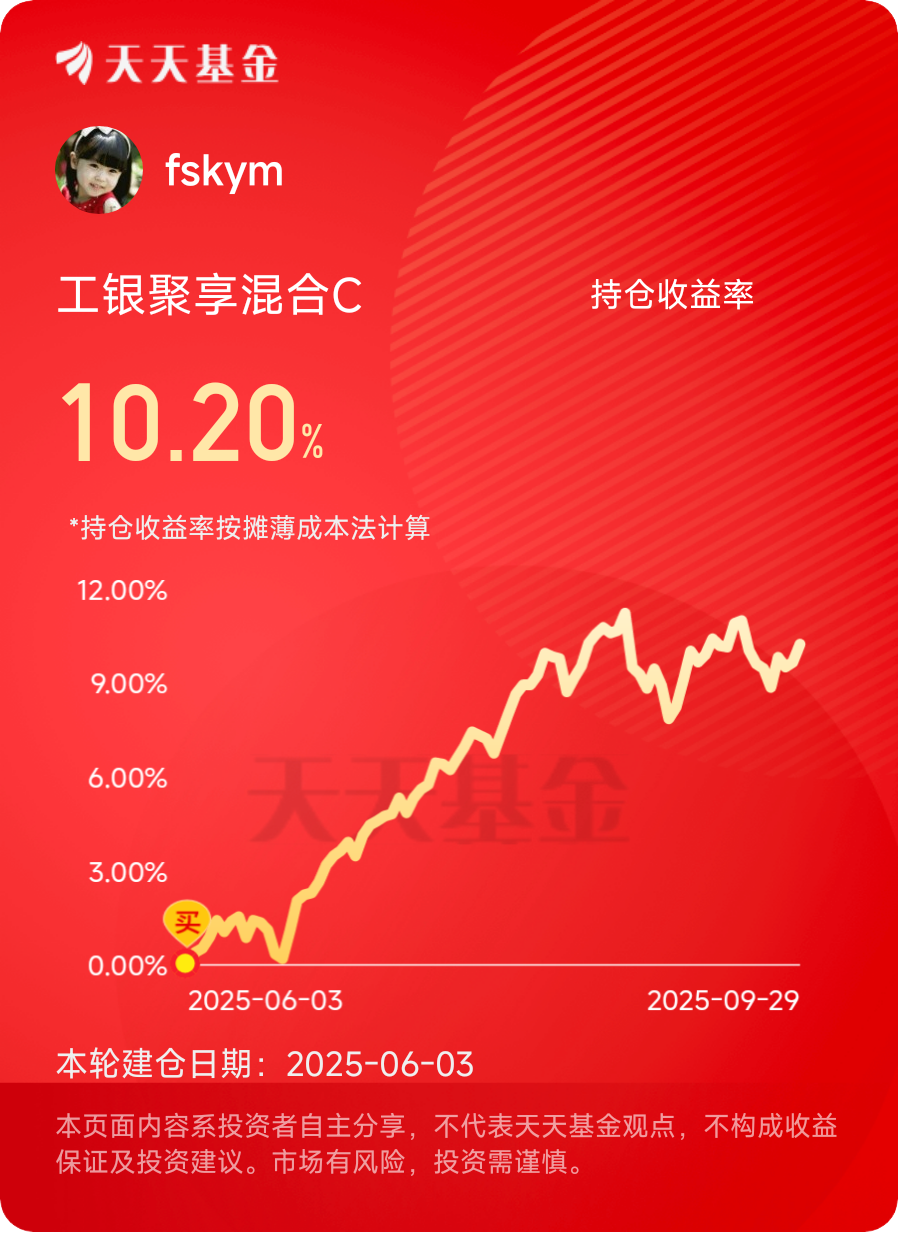 $工银聚享混合C$ 主要投资小盘策略的偏债基,别看小盘偏债基金名字里有个“小盘”,它可一点都不小气。小盘股虽然规模小,但灵活性强得很。这些小盘股企业就像一群灵活的小猴子,市场一有风吹草动,它们就能迅速调整策略,抓住机会。而且,小盘股的成长空间也大得很。比如一些刚起步的小公司,可能在某个新兴领域有了新突破,一下子就火了。小盘偏债基金可以利用这种灵活性,通过投资一些优质的小盘股,来增加收益。这就像是在稳稳的债券收益基础上,再加点“小甜头”,让我们的投资更有滋有味。@工银瑞信基金