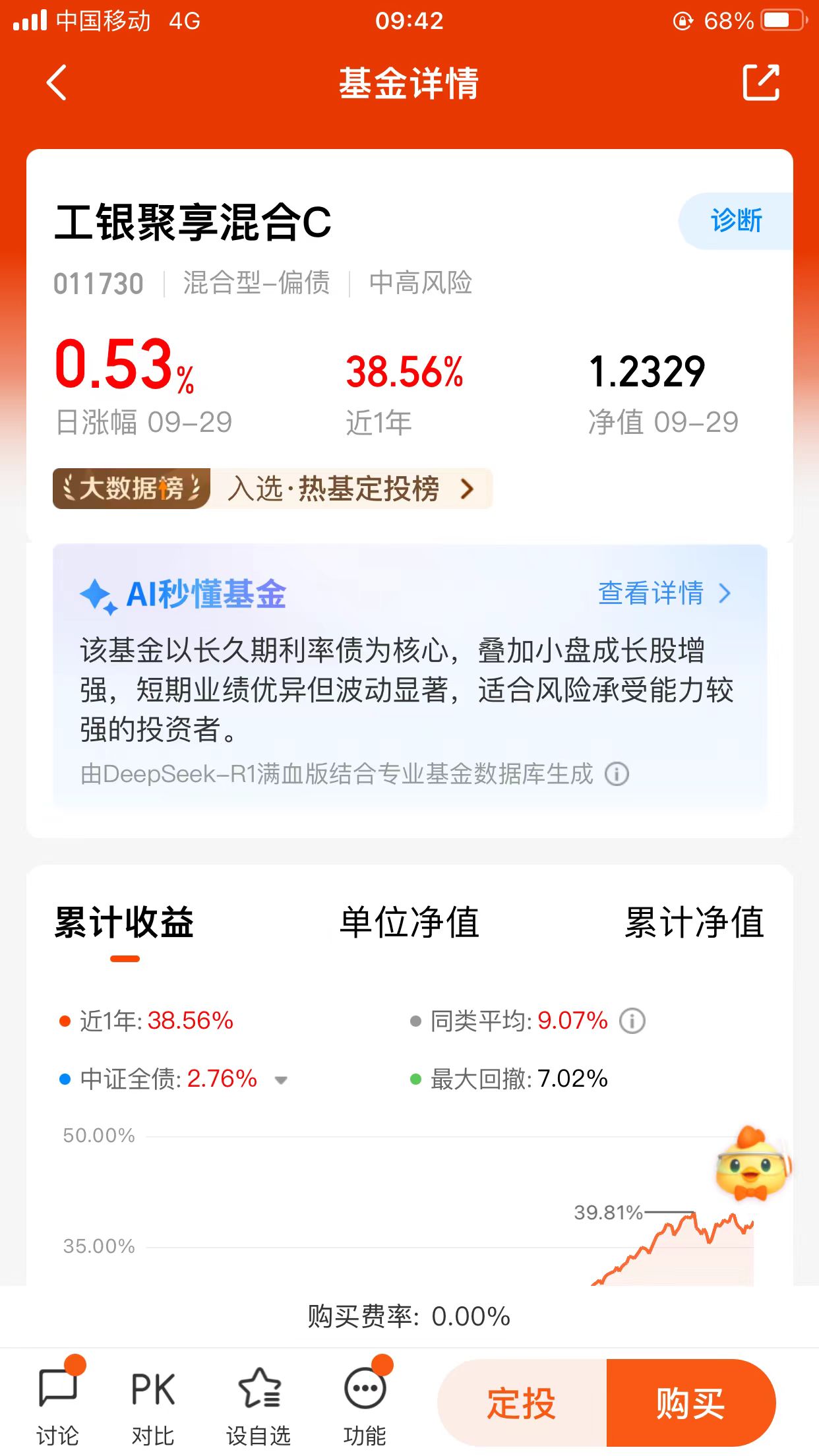工银聚享混合C类份额采用“0申购费+持有满30天0赎回费”模式,管理费仅0.6%/年。以10万元持有3年为例,较同类基金可节省费用约900元,相当于额外增加1.5%收益。这种“低摩擦成本”设计,尤其适合定投或长期持有投资者。