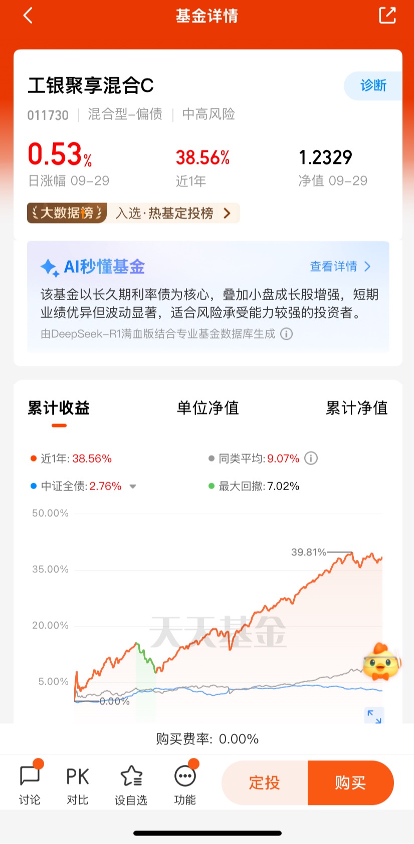 市场震荡期本质是风险与机遇的动态博弈。政策驱动下的结构性行情往往伴随行业轮动加速,单一资产类别难以持续跑赢市场。偏债混合型基金通过动态调整股债比例,既能利用债券资产降低组合波动,又能通过权益投资捕捉结构性机会,形成“进可攻、退可守”的防御体系。工银聚享混合的独特价值在于,其以“绝对收益”为目标,通过严格的风控框架和主动管理能力,在控制回撤的同时实现收益增强,成为震荡市中兼顾稳健与增值的理想工具。