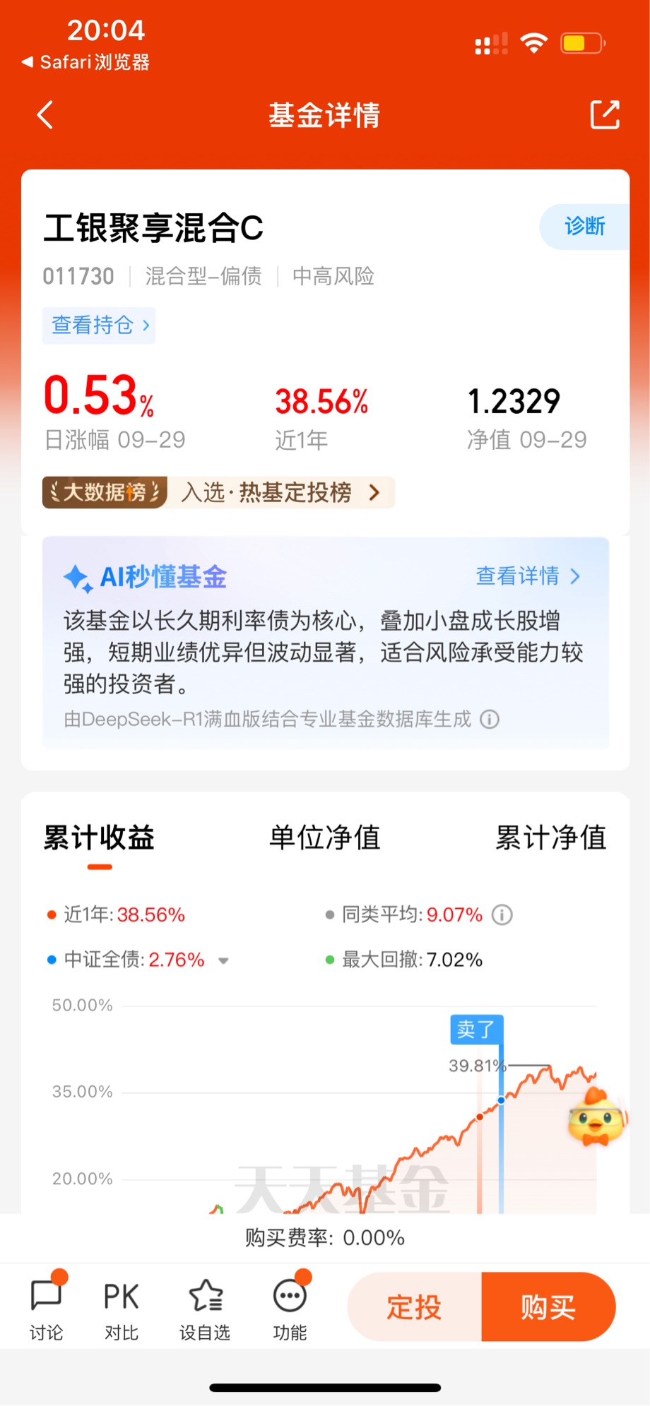 这日子总不能一直这么憋屈下去吧?后来也是机缘巧合,参加了工银瑞信基金社区的一个活动,慢慢听人聊起了他们家的“工银聚享混合”这只基金。一听介绍,是偏债混合型的,心里就有点活络。 我这低风险偏好的老毛病又犯了,一开始是真犹豫,毕竟加了点权益的东西,会不会风险变大啊?但看着手里那波动越来越大的纯债基金,再看看别人分享的“聚享”的情况,抱着“死马当活马医”的心态,我一咬牙,挪了大概10%的仓位过去试试水。