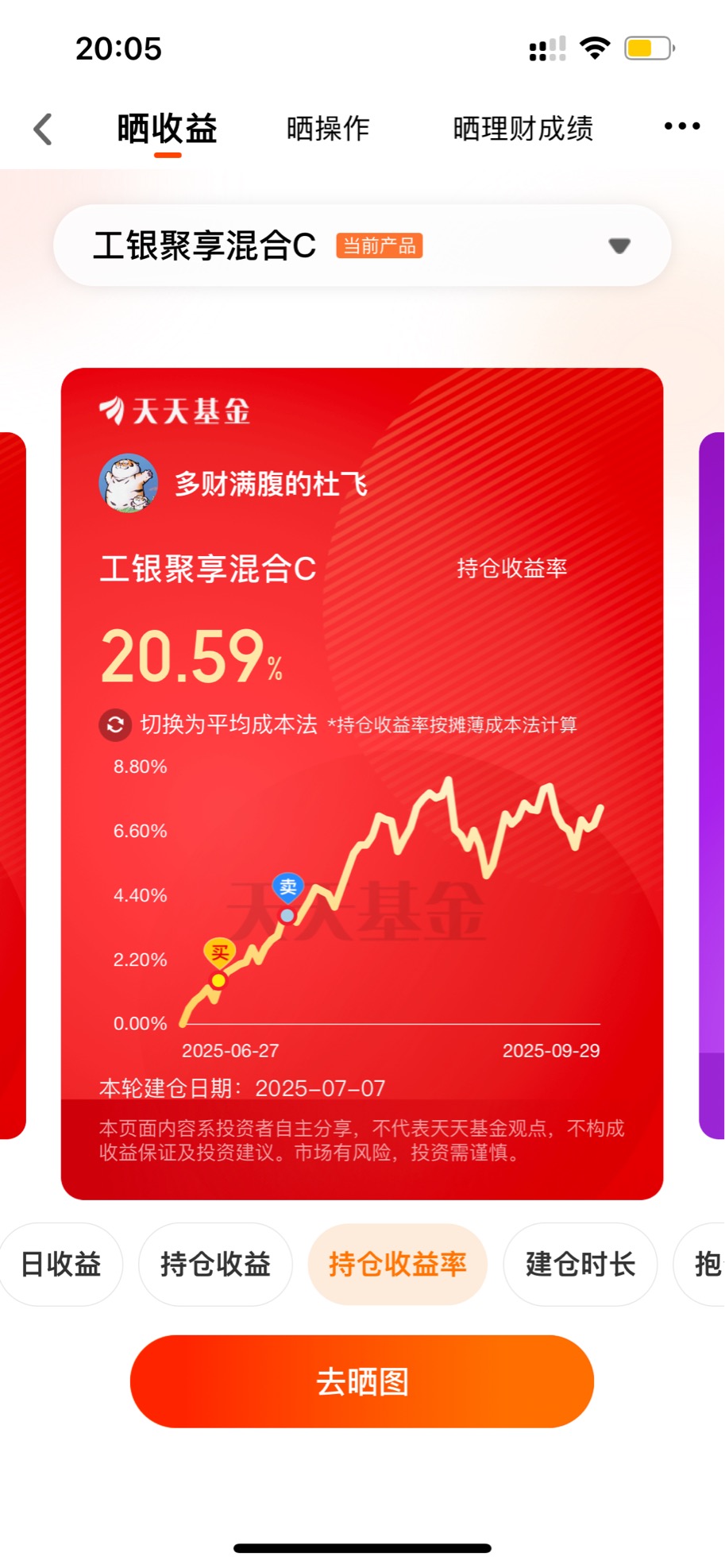 #天天基金13岁啦#最近股市波动得挺厉害,搞得不少投资者心里七上八下的,我也在琢磨着找个靠谱的基金来应对这种局面。在翻看了不少产品后,工银聚享混合这支基金一下子就抓住了我的眼球——它可不是那种四平八稳的纯债基,而是个进攻型的混合债券基金,里头掺着权益类仓位,能打能防,特别适合现在这种起起落落的市场环境。