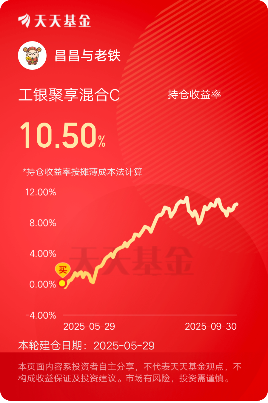 在基金吧和其他投资者交流了很多,也学到了不少投资思路——原来选偏债混基金不只是看收益,还要看策略是否契合市场、风险控制是否到位。我已经把工银聚享混合C加入了我的核心持仓,也会继续跟踪后续的季报和市场行情,适时调整投资计划。$工银聚享混合C$
