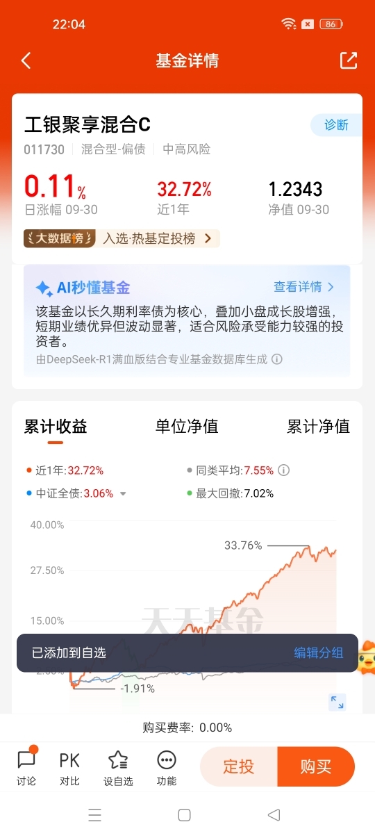 在沪指横盘震荡、中小盘结构性行情凸显的当下,$工银聚享混合C$ 用“同类第一”的业绩证明了其策略有效性。它以债券为盾筑牢稳健底盘,以中小盘权益为矛捕捉成长机会,以可转债为纽带平衡风险收益,完美适配了当前市场的分化格局。对于既想分享中小盘行情红利,又不愿承受权益基金高波动的投资者而言,这款“低波动+高收益”的偏债混合基金,无疑是震荡市中的理性之选。@工银瑞信基金