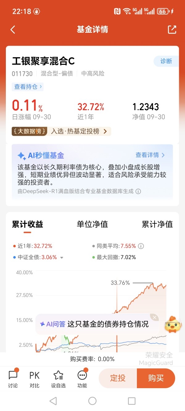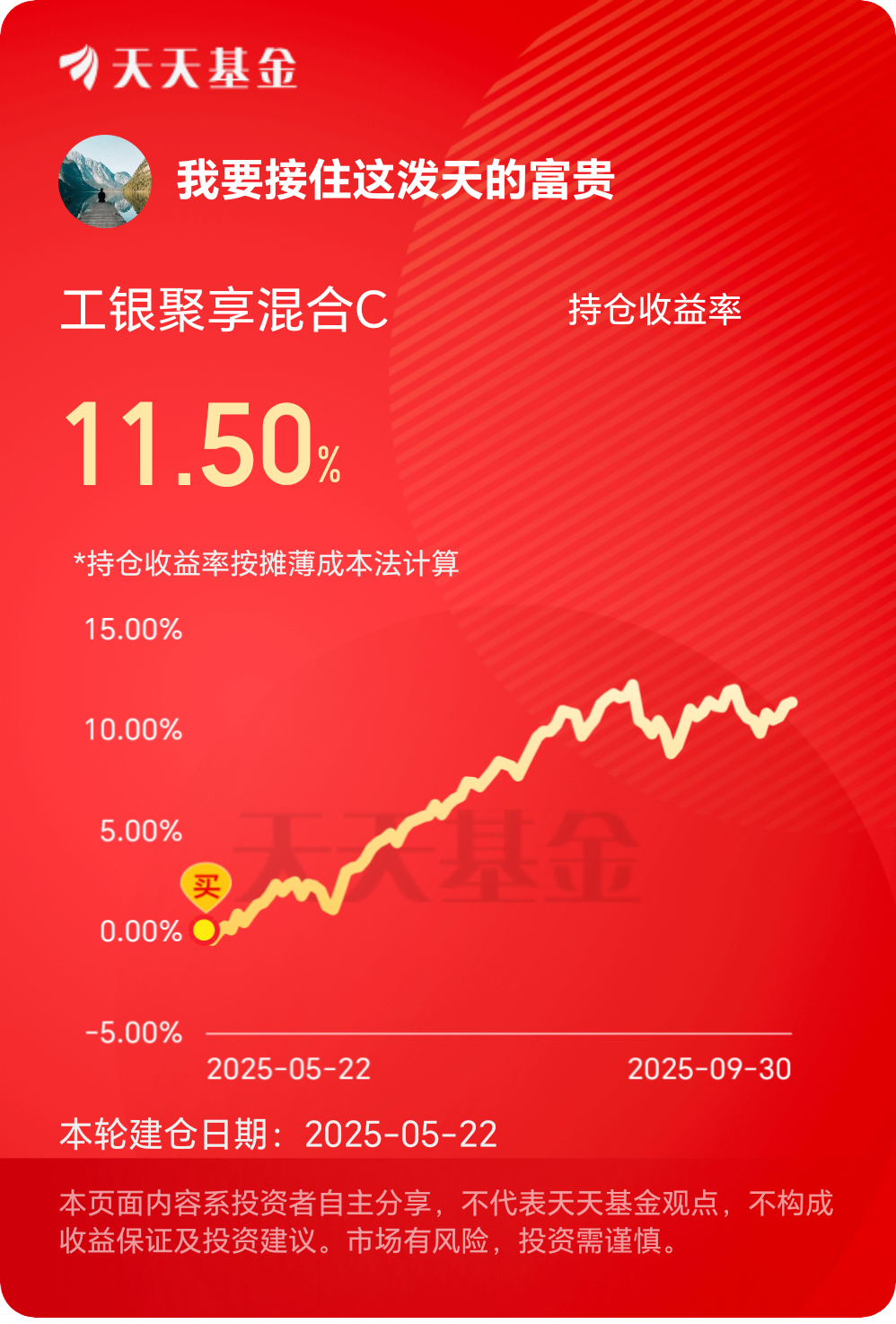 #天天基金13岁啦# 固收类基金更低的“震感”、对市场波动更高的防御性,使其成为资产组合中“压舱石”的不错选择。从过去的表现来看,成立以来持续经历股、债两市的波动,但业绩走势仍整体稳健向上,业绩排名同类前列,真正做到攻守兼备,在震荡频频的当下更值得托付!持有工银聚享的这些日子,让我见证了专业投资的力量。债券作为压舱石,权益作为推进器,这种经典配置在焦文龙与何顺手中,焕发出持久的生命力。有段时间,市场风格快速轮动,基金净值出现反复。但我注意到,无论市场如何变化,基金始终坚守投资边界,债券配置稳健,个股选择审慎。这份定力最终获得回报,基金净值在经历盘整后稳步上行。这个过程让我摒弃了短期博弈的思维。曾经沉迷于每日净值起伏,现在更关注资产的长期价值。基金通过严格的风险控制和科学的仓位管理,实现了持续稳健的增长,这比短期的高收益更令人踏实。投资如同种树,重要的是选好苗、勤培育,而非频繁移栽。工银瑞信的专业精神令我折服。从精准的宏观研判到细致的个股分析,都能感受到投研团队的用心。这种专业,让我对基金充满信心。在投资的道路上,我愿与工银聚享继续并肩,静待时间玫瑰的绽放。