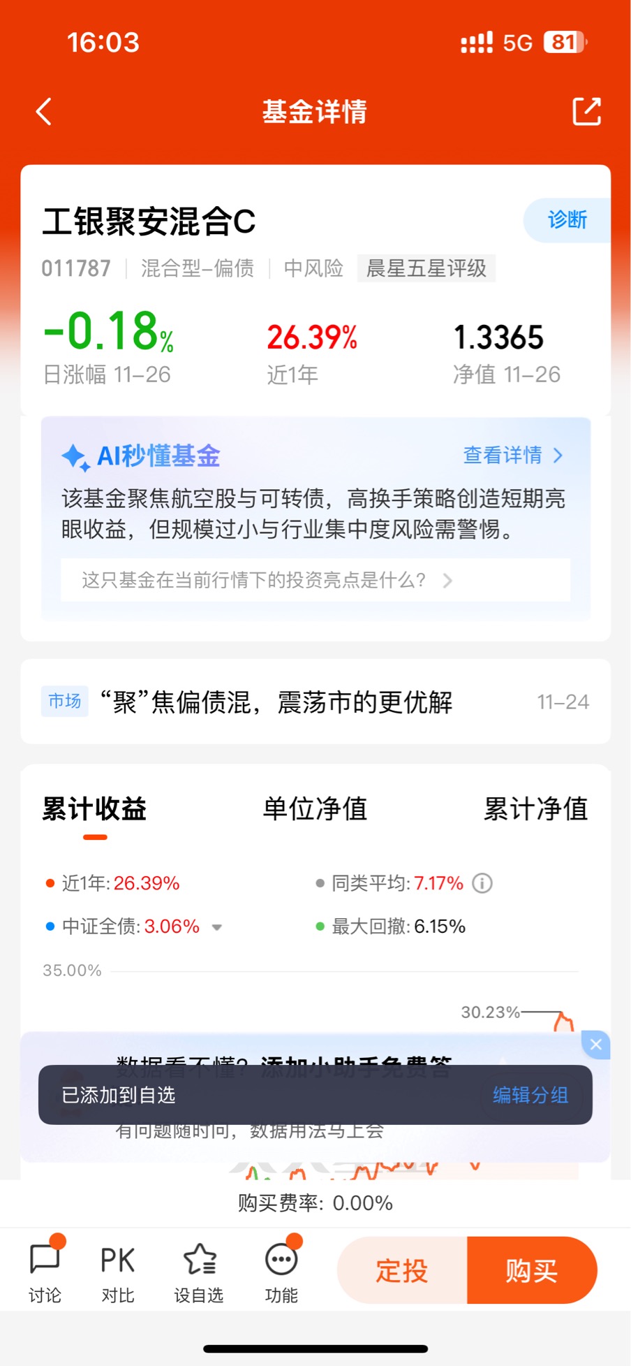 产品设计对普通投资者格外友好,持有体验拉满。作为C类份额,它不仅零申购费,持有满30天还能免赎回费,日常调整仓位毫无压力。而且管理费也比同类主动权益基金低不少,长期持有下来,能有效减少费用对收益的侵蚀。对我这种习惯长期持有、偶尔调整配置的投资者来说,这种低成本、高灵活度的设计,无疑是加分项,让投资变得更省心划算。