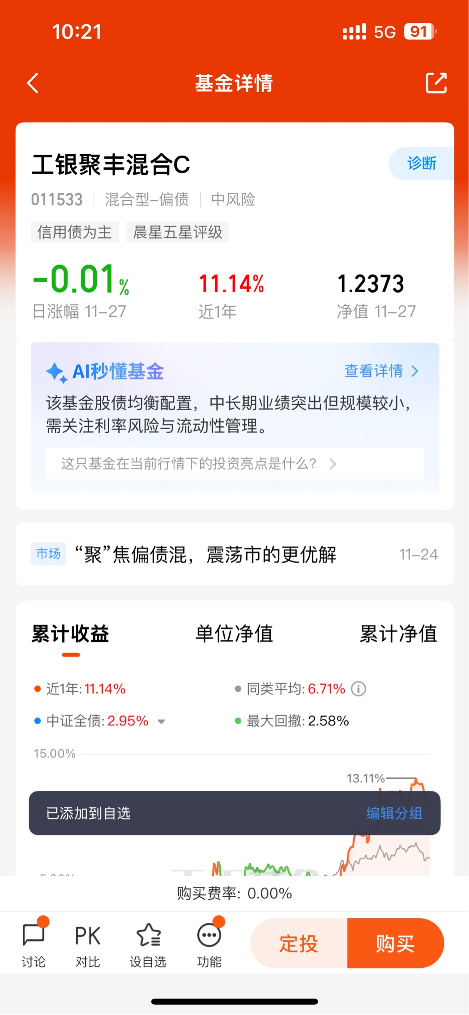 作为一名追求“稳中求进”的普通投资者,我对基金的核心诉求始终是“风险可控、收益可期”。试过纯债基金的平淡收益,也经历过权益基金的剧烈波动,直到配置了工银聚享混合C,才找到契合自身需求的平衡之道。这只基金凭借清晰的投资逻辑、贴心的产品设计和专业的管理团队,成为我持仓中的“安心之选”,其未来走势也让我充满信心。