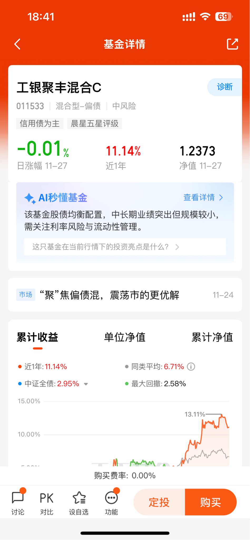 作为一名追求“稳稳的幸福”却不满足于纯债收益的投资者,我在震荡市中踩过不少单一资产的坑,直到遇见工银聚享混合C,才找到契合需求的配置答案。这只基金既避开了纯权益基金的剧烈波动,又突破了纯债基金的收益局限,凭借清晰的策略逻辑和出色的持有体验,成为我组合中安心度最高的核心标的,其未来走势也让我充满信心。