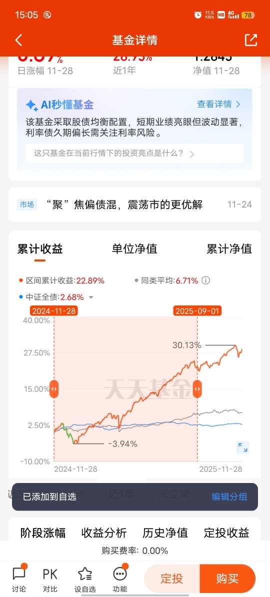 历史业绩表现亮眼,看看它过去的表现,那真叫一个牛。近一年收益率目前达到了 30.13%,同类排名很靠前。成立以来年化回报也很不错,短期和长期都能让你赚到钱。而且它还经历过市场的考验,在不同的行情下都有稳定发挥,就像一位可靠的伙伴,不管遇到啥情况,都能给你交出一份满意的答卷。