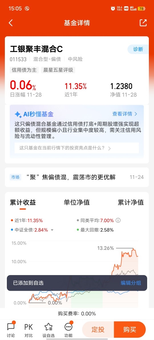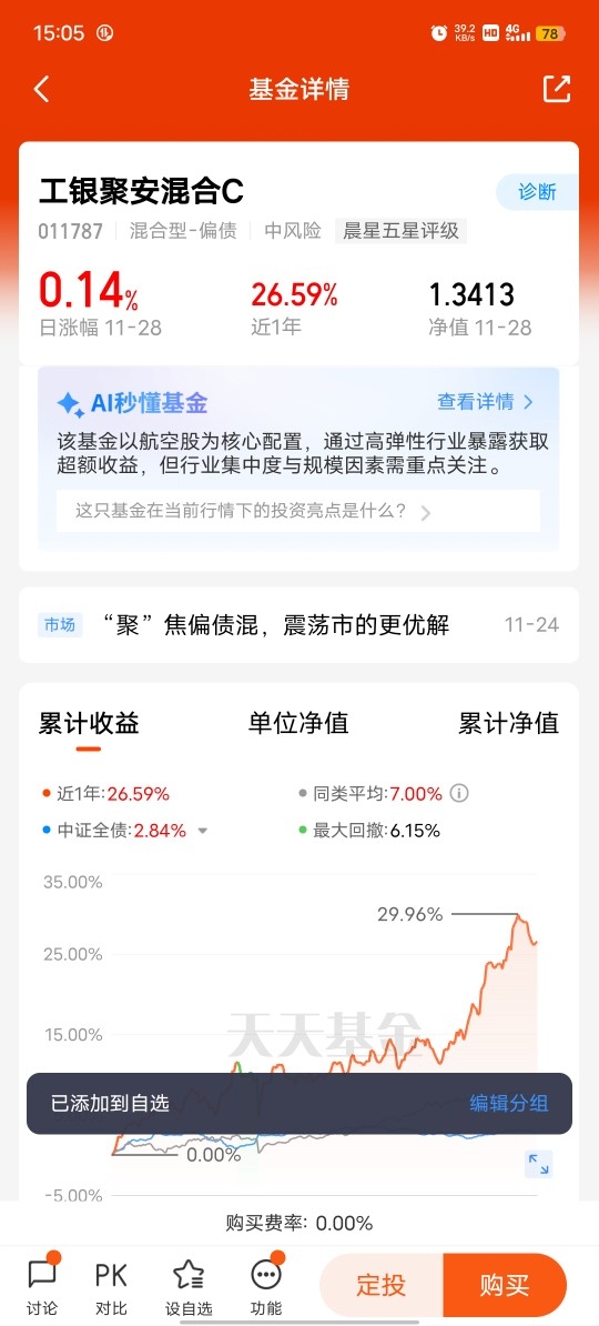 大家好,今天来给你们讲讲工银聚享混合 C(011730),这只基金可有不少亮点哦!