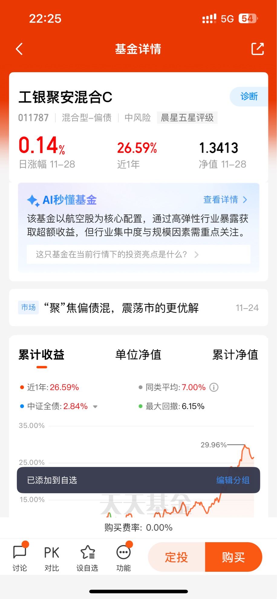 作为一个偏爱“稳中求进”的普通投资者,我踩过不少单一资产波动的坑,直到持有工银聚享混合C两年多,才找到契合需求的配置选择。这只基金没有网红基的短期暴涨噱头,却用持续稳健的表现,成为我持仓中安心度最高的资产之一。聊聊我亲身体验到的投资优势,以及对未来走势的看法。
