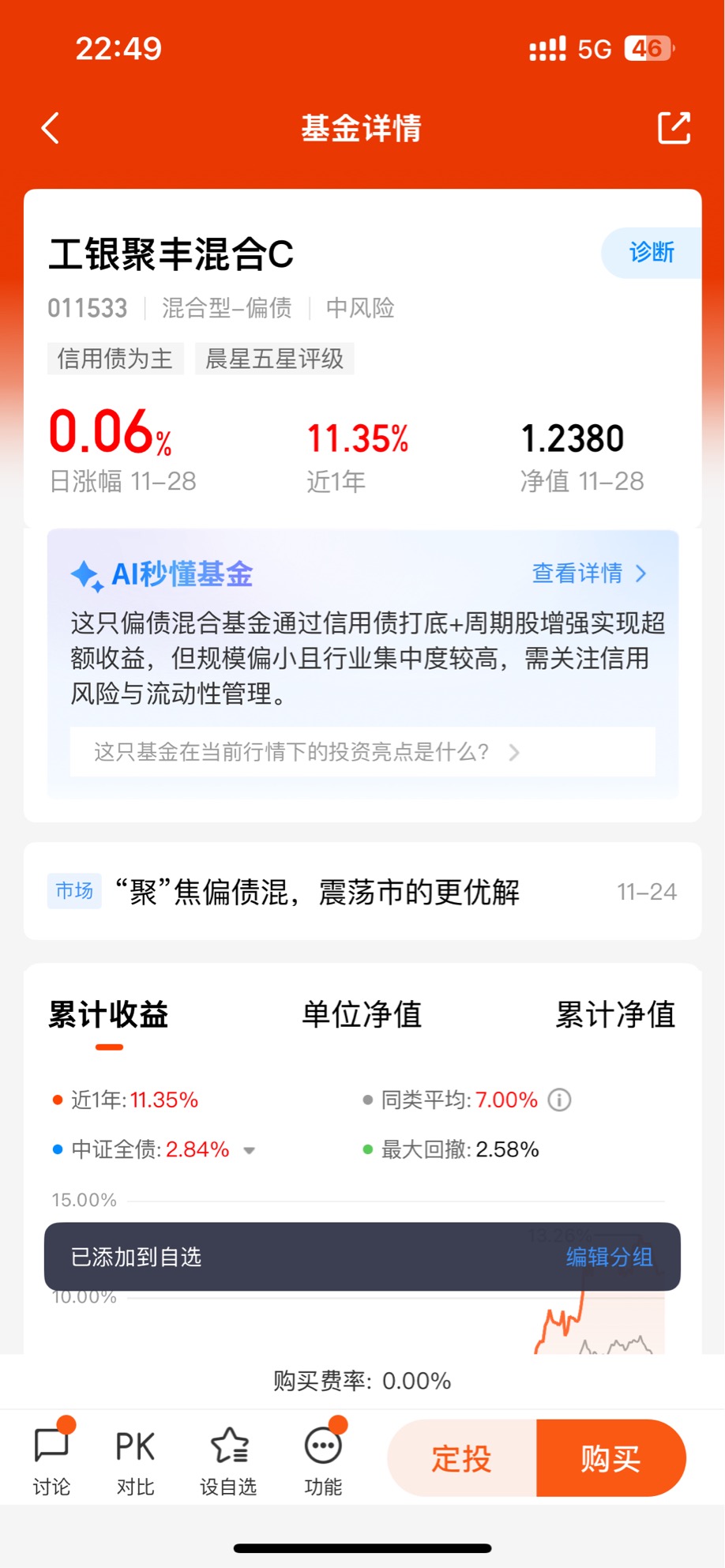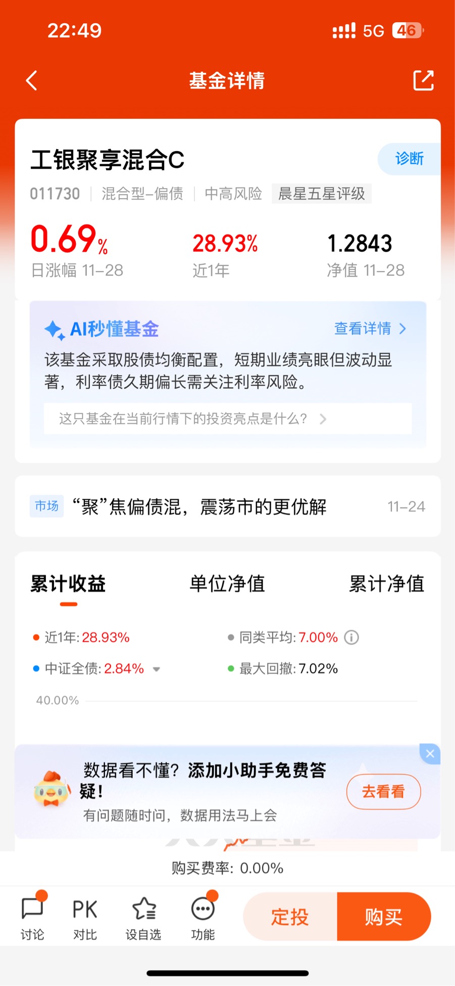 作为一个既想要稳健收益、又不甘心错过市场机会的投资者,我试过不少理财方式,直到持有工银聚享混合C一年多,才真正找到契合需求的选择。这只基金没有极端涨跌的刺激,却用“稳中有进”的表现,成了我持仓中最让人安心的存在。聊聊我亲身体验到的投资优势,以及对未来走势的看法。