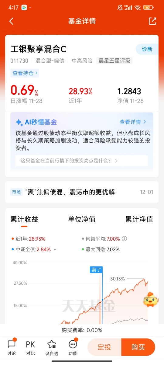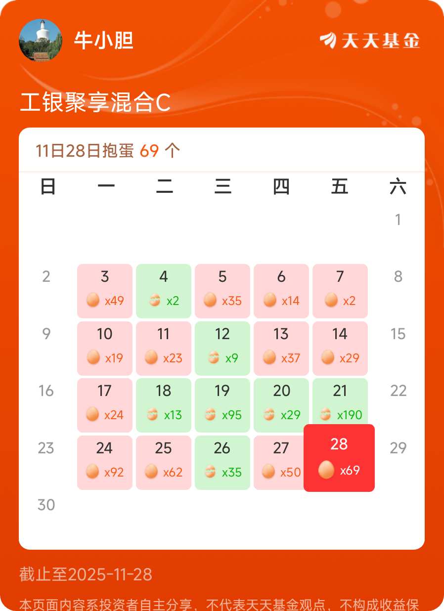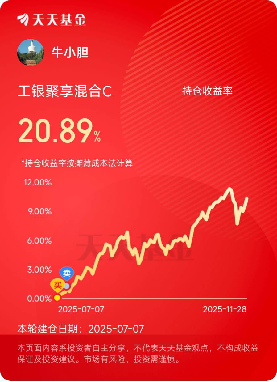 回望这一年的投资历程,市场的起起落落让我更加明白,真正的好产品不是能在牛市中赚得盆满钵满,而是能在震荡中保持定力,在波动中创造价值。工银聚享混合用实打实的业绩证明,稳健与收益并非不可兼得。年末之际,与其在存款的低收益中纠结,在权益市场的震荡中焦虑,不如将目光聚焦于这类“攻守兼备”的偏债混合基金。而工银聚享混合凭借其扎实的固收底座、强大的量化赋能、完善的风控体系和亲民的持有体验,无疑是当前市场环境下的更优解,让我们在辞旧迎新之际,既能守住安心,也能静待来年的收益花开。@工银瑞信基金