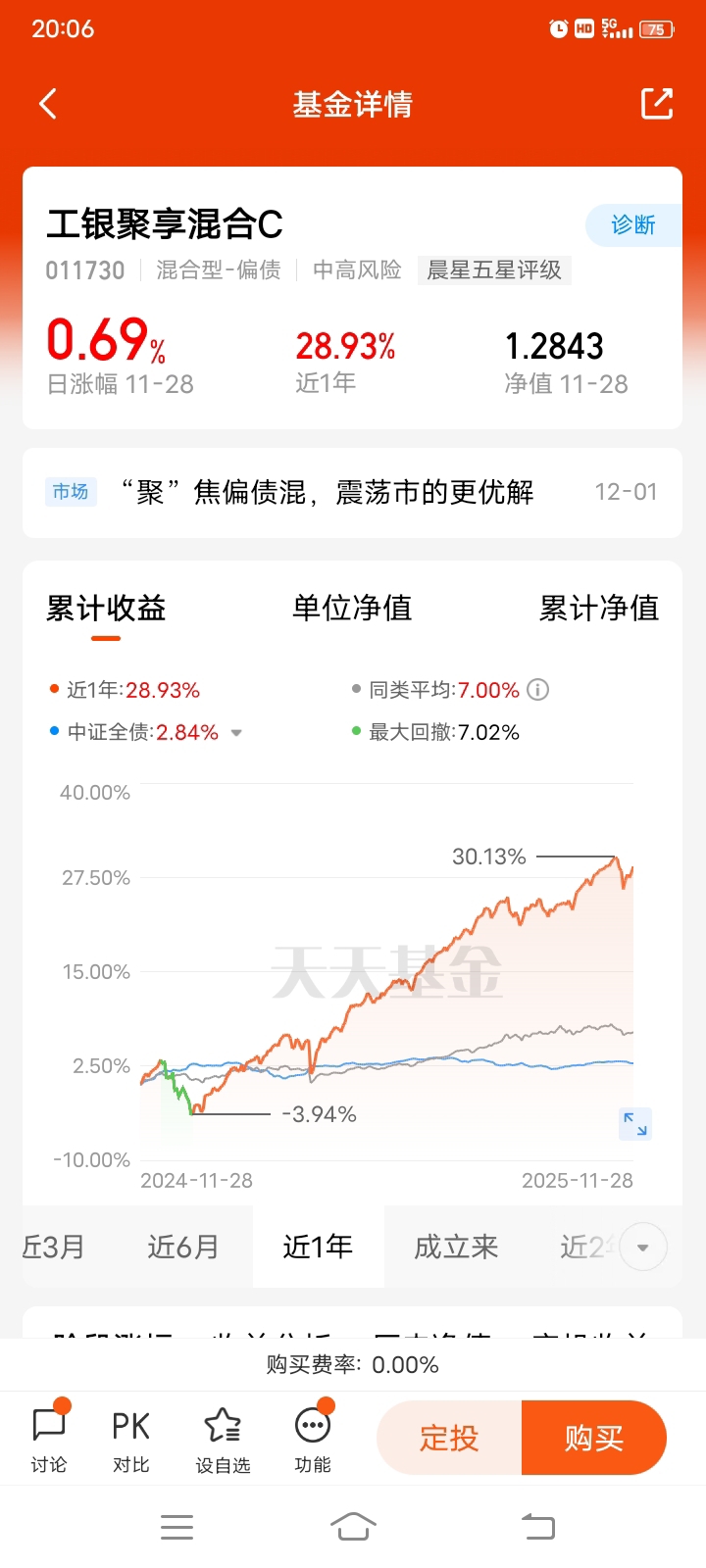 我看好$工银聚享混合C$!我觉得拥抱固收+更合适。现在市场环境复杂,纯债基金虽然