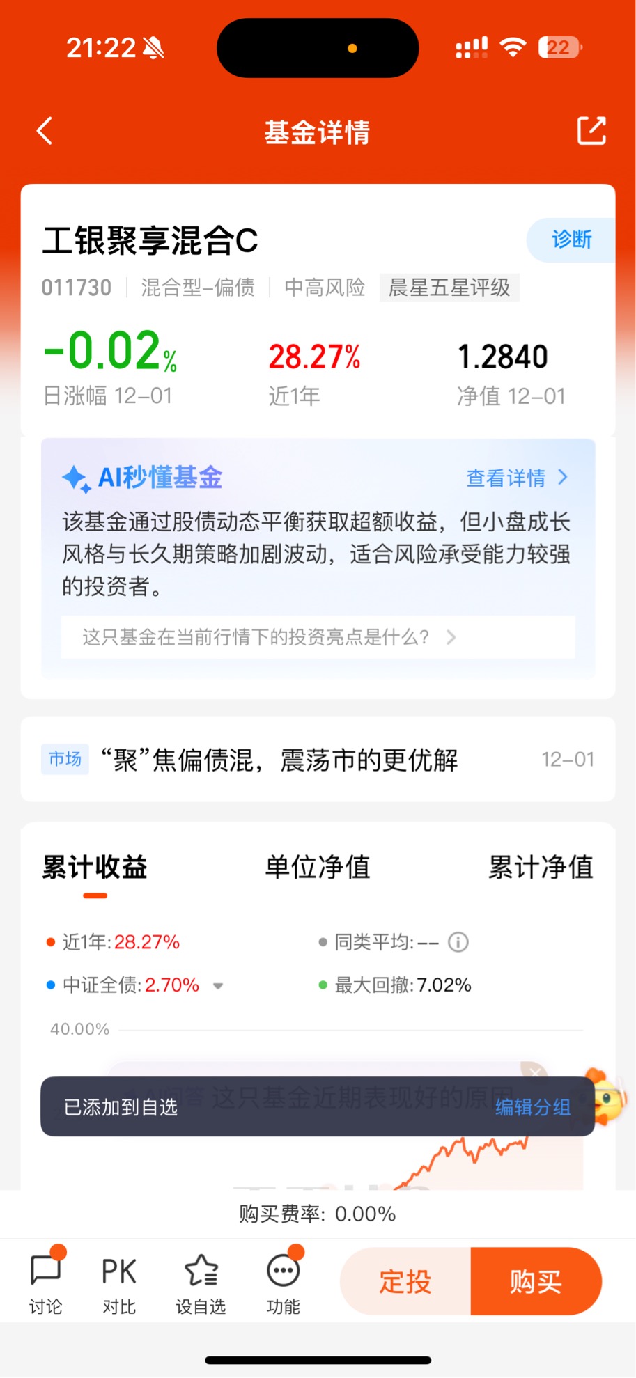 #工银聚焦偏债混#工银聚享是偏债混合型基金在权益类资产和固收类资产上都有配置,从该基金成立至今的资产配置数据看,基金经理会根据股债风险溢价,来改变股和债的资产配置比例。股票占比不到40%,但都是微盘股范畴。今年净值屡创新高!