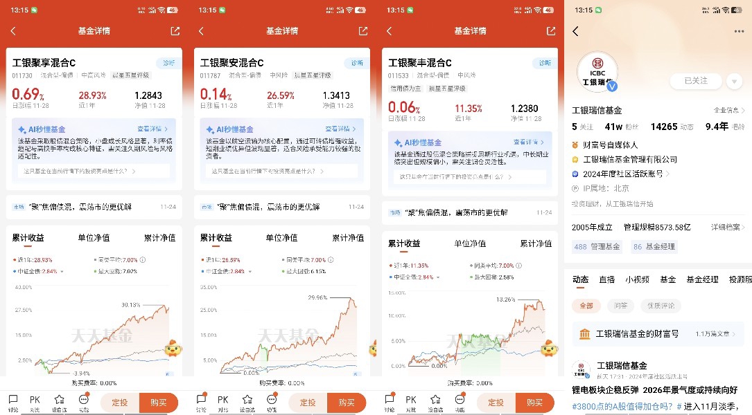 工银聚丰混合则采用“均衡价值+固收”思路——权益端均衡覆盖有色金属、医药、金融等低相关性行业,通过多行业分散配置平滑波动,追求长期稳健的收益体验;这类均衡策略在震荡市中更能抵御单一行业的回调风险,适配追求“风险分散+长期稳增”、不想押注单一风格的投资者。
