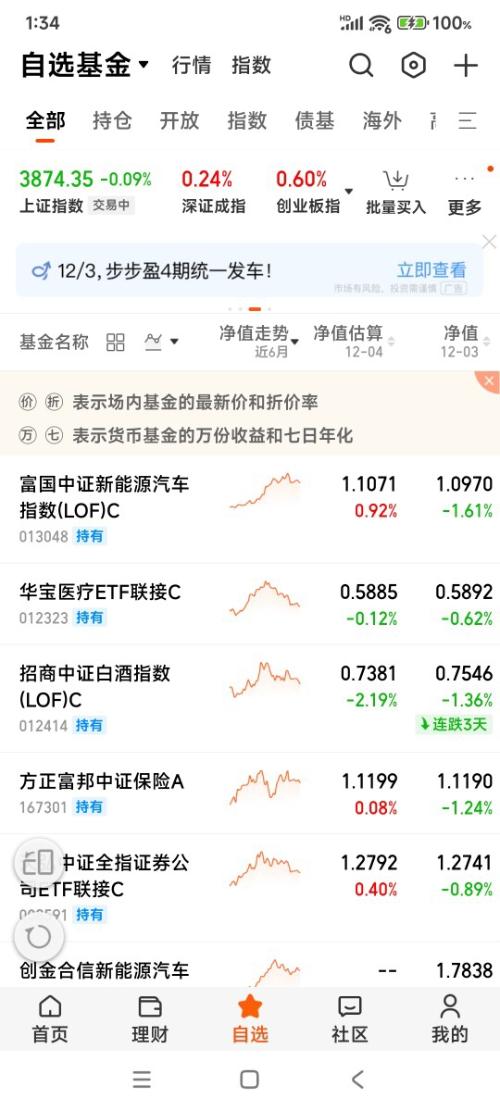 2025年12月4日下午1:34分实战。五大重仓2绿3红,绿的有2个达到买点,实