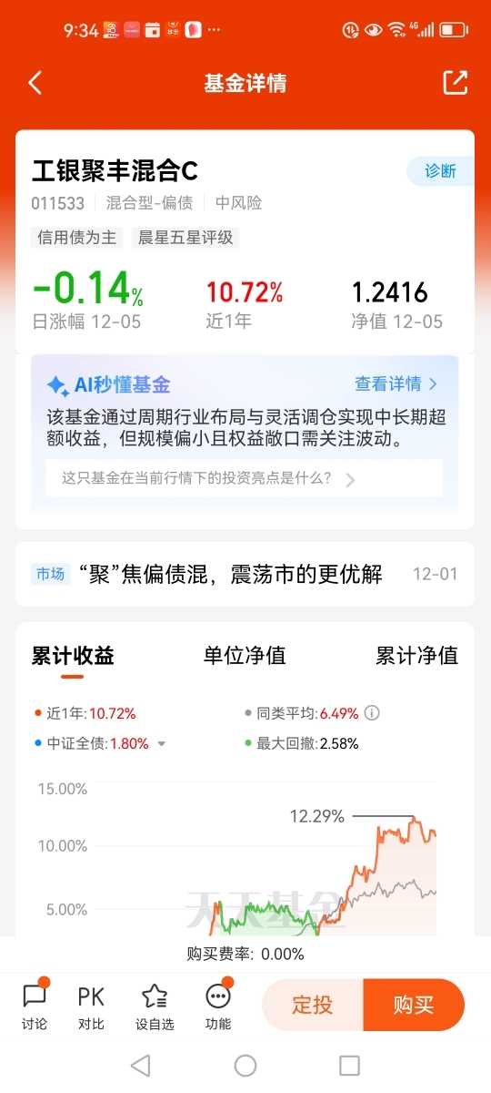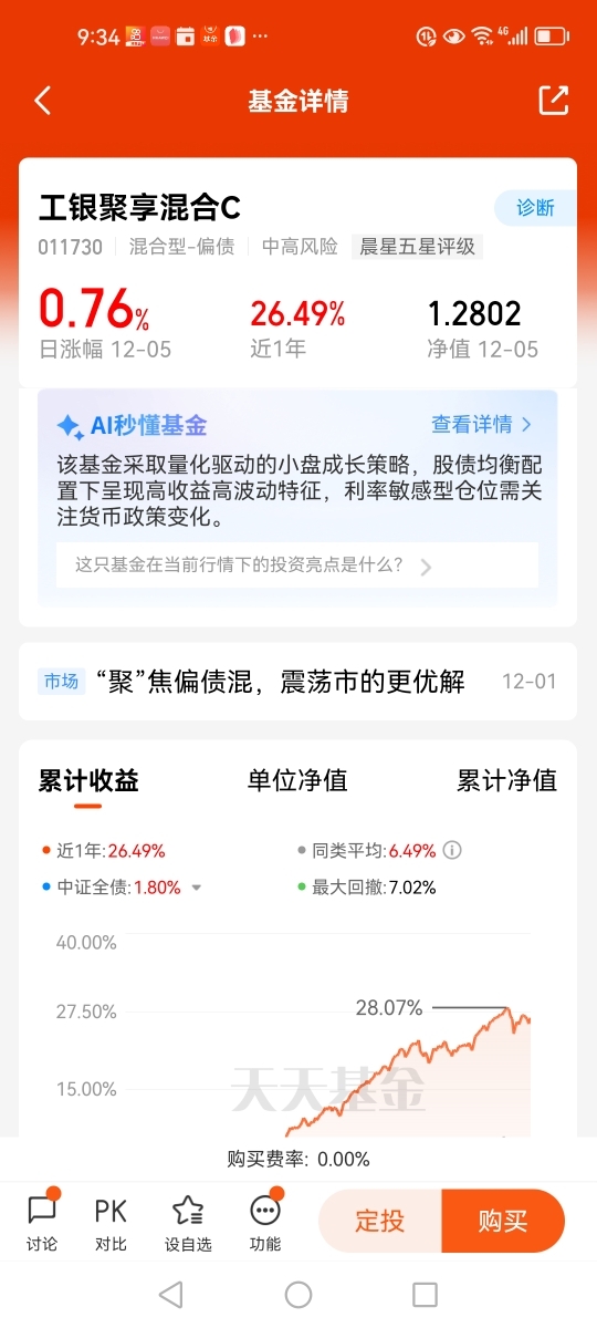 $工银聚享混合C(011730)$作为混合型-偏债基金在今年股市行情下,近6月收益率13.87%,近1年收益率26.41%,为投资者获得了较高的弹性回报。$工银聚享混合C$在当前市场环境现的进可攻退可守,可成为投资者布局资产的好选择。@工银瑞信基金