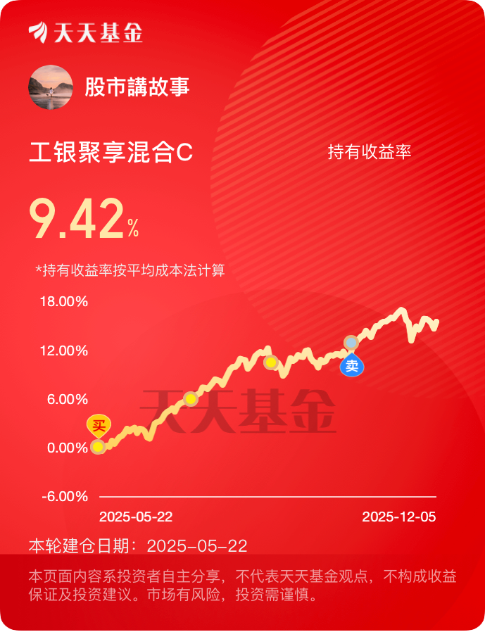 我非常信赖工银瑞信基金,长期定投、持有工银聚享混合C、工银聚安混合C、工银可转债债券、工银沪深300指数C、工银消费股票C、工银健康产业混合C、工银新兴制造混合C等十多只工银瑞信的基金,获得了非常好的收益回报和持有体验!将会继续定投并长期持有!@工银瑞信基金