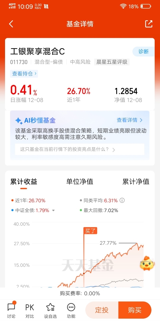 #工银聚焦偏债混#第4天,今天我想从基金的持仓逻辑入手,和大家深入探讨一下它是如何在控制风险的同时,实现收益最大化的。对于偏债混合基金来说,持仓结构直接决定了基金的风险收益特征,而$工银聚享混合C$ 的持仓配置,完美诠释了“稳健为先,弹性为辅”的投资理念。