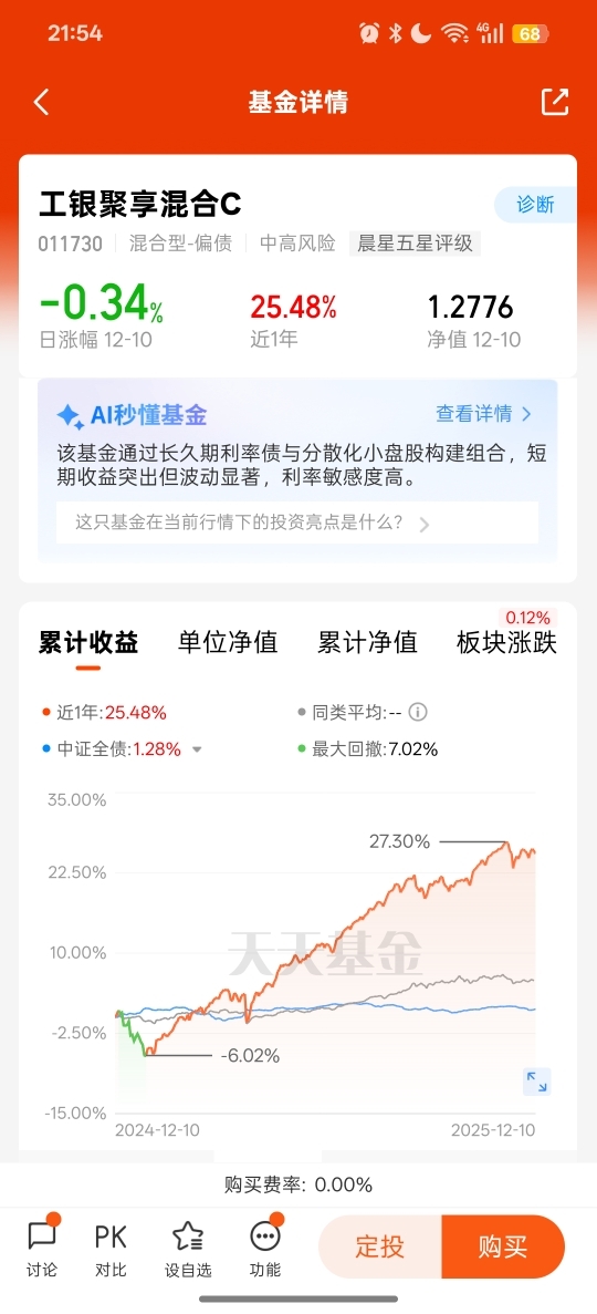 #工银聚焦偏债混#我最喜欢工银聚享,它属于“量化+固收”策略,量化部分重点聚焦微盘股,并通过极度分散的持仓(前十大重仓股占比不足2%)严控个股风险。同时,债券部分积极进行久期择时,以高等级利率债提供稳定基石。这种科学的股债搭配,使其在追求超额收益的同时,能较好地平滑波动,超高的夏普比率就是明证,充分体现了该策略在震荡市中的强大适应性。@工银瑞信基金