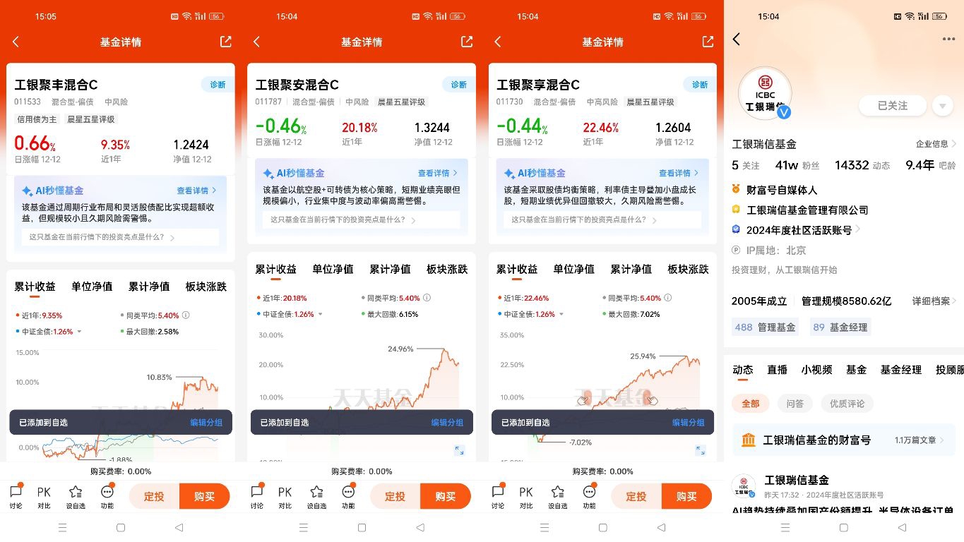 从长期视角看,$工银聚享混合C$ 的配置价值更为突出。该基金近一年收益率达33.10%,远超同类平均水平,且98%的“固收+”基金今年以来实现正收益,印证了偏债混合策略的有效性 。其采用的股指期货套期保值策略,能有效对冲权益市场下行风险,进一步提升组合的稳定性。对于追求资产稳健增值的投资者而言,在当前市场环境下,配置工银聚享混合C这类兼具债券安全性与权益弹性的产品,既能抵御利率波动风险,又能分享经济复苏带来的权益红利,是震荡市中资产配置的明智之选。