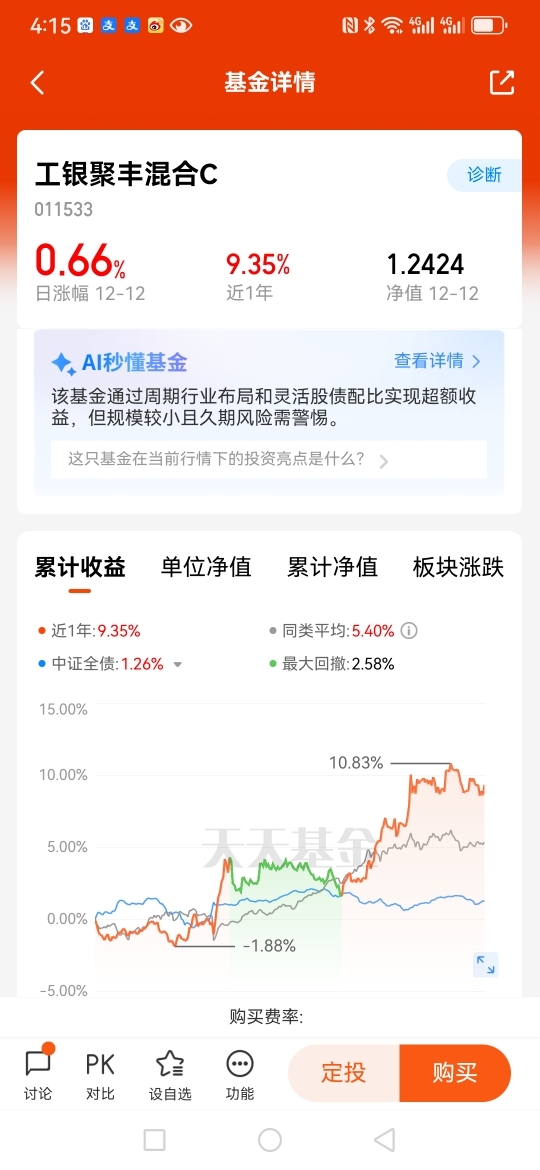 比如我自己也关注了比较长时间的$工银聚享混合C$ ,这只基金不光今年表现牛,往前看近6个月、近1年的业绩,它都是同类基金里的佼佼者。不管短期还是长期,都能做到这样的业绩其实可以说是全市场都找不到几个,也表现出基金经理较强的适应能力,大家也可以多多关注这只基金,也许是震荡市里最好的选择。