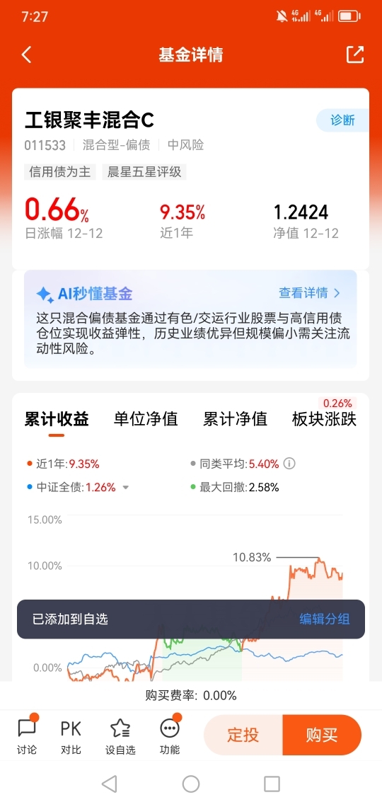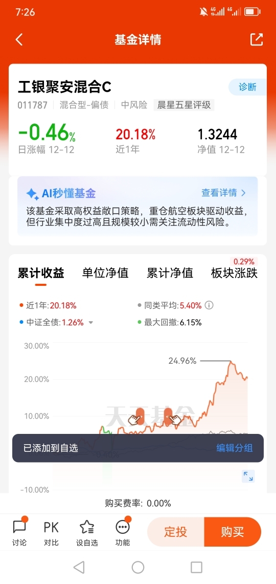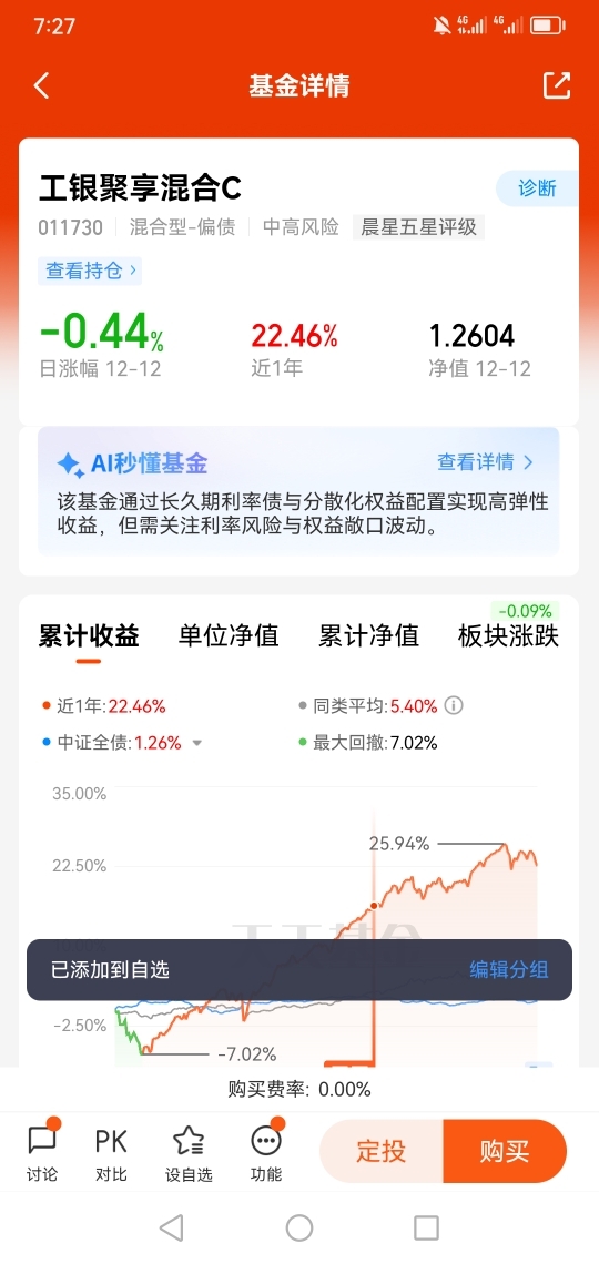 我持有的是工银聚享混合C(011730),因为它今年以来取得的投资战绩是有目共睹的。@工银瑞信基金