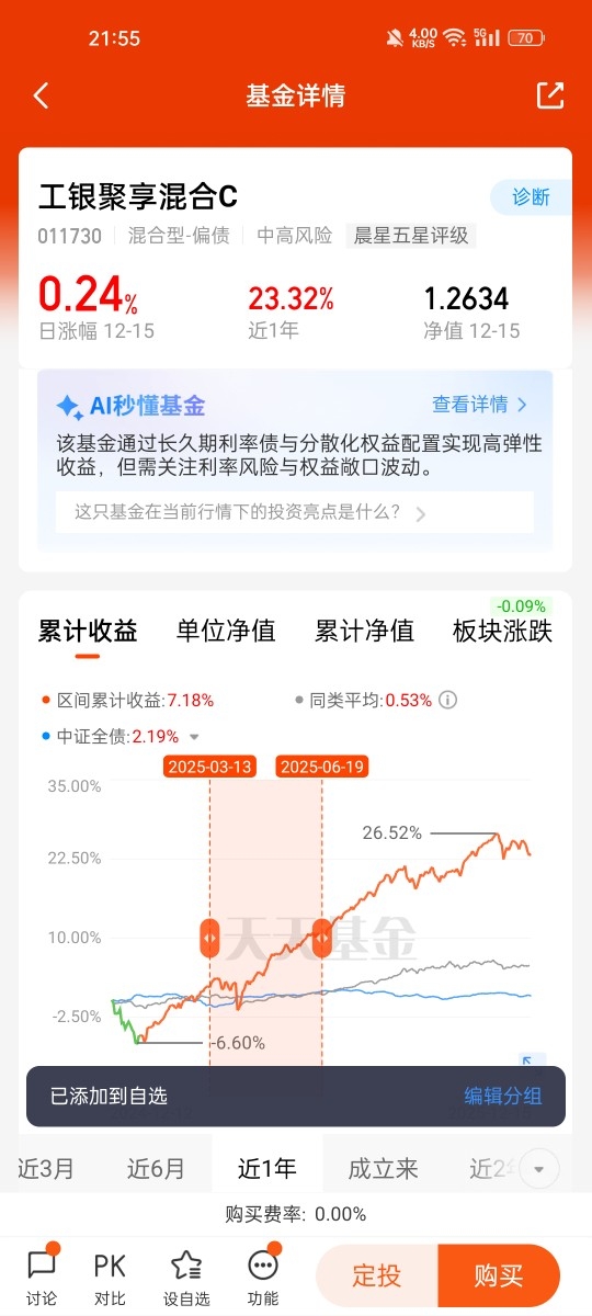 综合来看,工银聚享混合C基金的量化 + 固收策略,既能把握市场机会,又能控制回撤风险,尤其适合震荡市或不确定性较高的环境。@工银瑞信基金 $工银聚享混合C$
