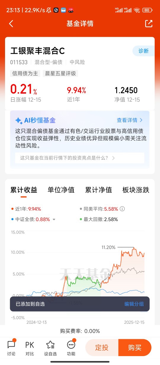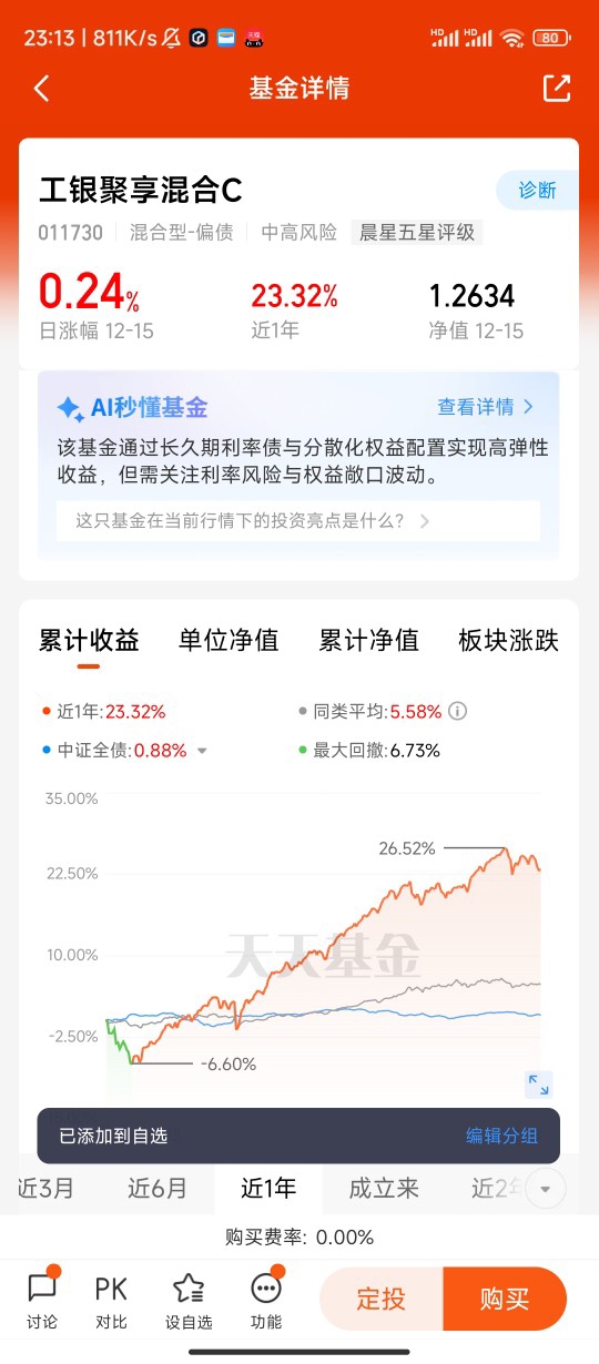 #工银聚焦偏债混# 在风云变幻的投资市场中,大家都渴望找到能带来“稳稳幸福”的产品,工银瑞信“聚”系列三只偏债混合基金各有千秋,而工银聚享混合C(F011730)凭借“量化 + 固收”的独特策略,在众多产品中脱颖而出,成为追求超额收益投资者的心头好。