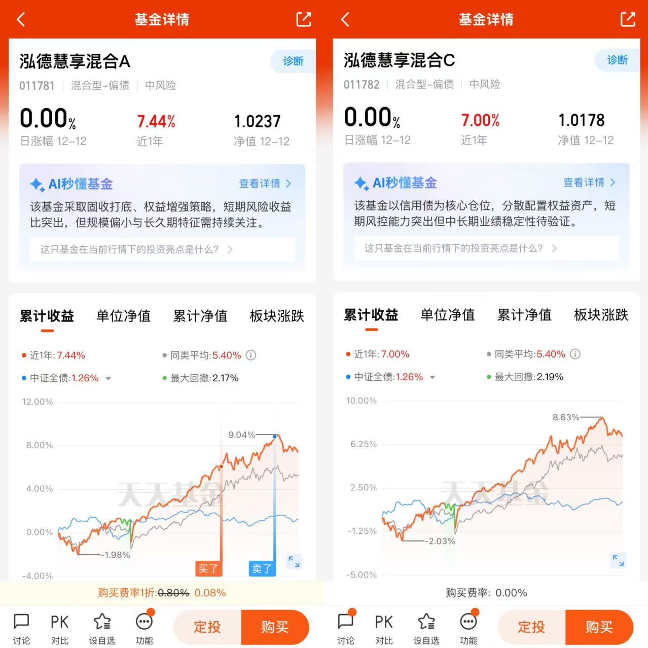 投资讲究的就是不要把资产放在相同的篮子里,而是要根据自己的风险承受能力和投资期限选择不同类型的资产。如果一部分钱放在活期存款、一部分闲钱买了波动较大的股票或者偏股混合基金,剩下一部分想既求稳又求赚,泓德慧享混合(A:011781;C:011782)正是这样能够满足投资者心愿的“求稳+求赚”宝藏产品。